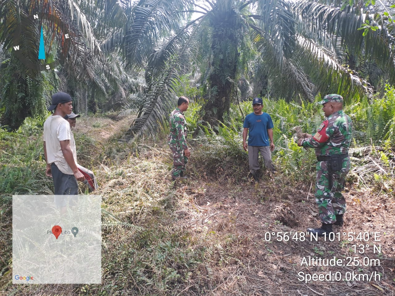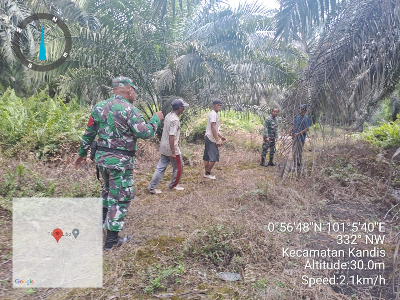Babinsa Sertu Aprianto bersama rekannya Serda Satria Marni menyebutkan,” Bahwa hari ini disaat pihaknya bersama tiga orang warga tempatan melaksanakan patroli karhutlah diarea lahan rawan terbakar di wilayah Kampung Libo Jaya pada situasi kondisi cuaca cerah.