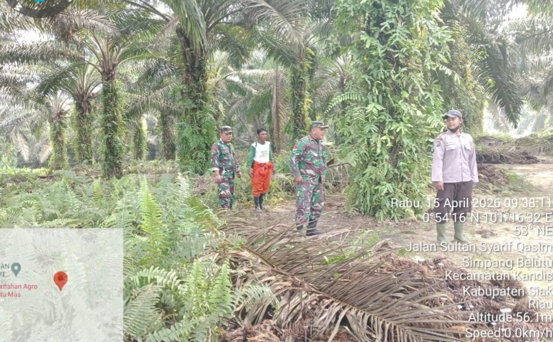 KANDIS – MATAHUKUM.ID – Babinsa Koramil 05/Pwk Kandis, Sertu Edy Simanjuntak dan Koptu K .Sitohang bersama warga tempatan melaksanakan kegiatan Patroli Kebakaran Hutan dan Lahan di sejumlah perkebunan serta lahan masyarakat yang dianggap rawan kebakaran diwilayah Kelurahan Kandis Kota Kecamatan Kandis Kabupaten Siak, Riau. Rabu, 15 April 2026.