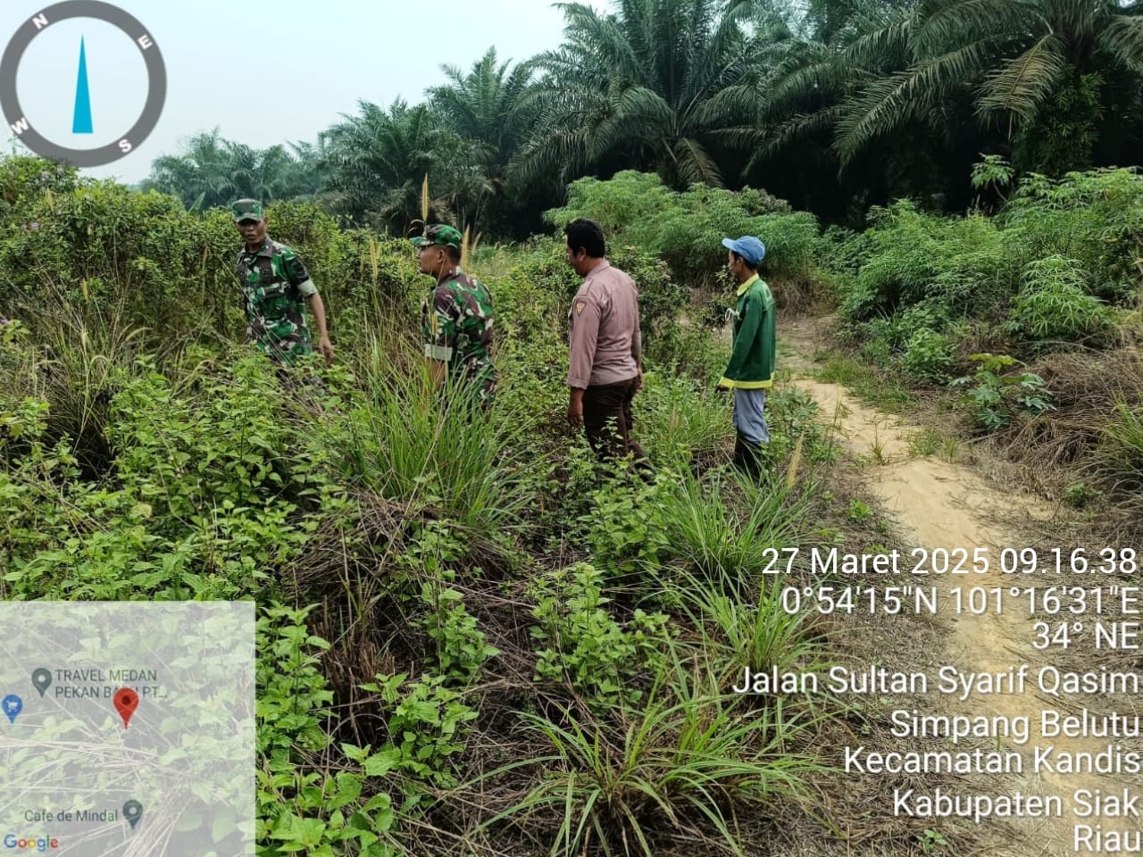 KANDIS – MATAHUKUM.ID – Babinsa Koramil 05/Pwk Kandi yaitu Sertu Aprianto dan Sertu Ridho Utomo bersama dua orang warga tempatan melaksanakan kegiatan rutin yaitu berpatroli karhutlah diarea lahan rawan terbakar hari ini di wilayah Kampung Belutu Kecamatan Kandis Kabupaten Siak, Riau. Kamis, 27 Maret 2025.