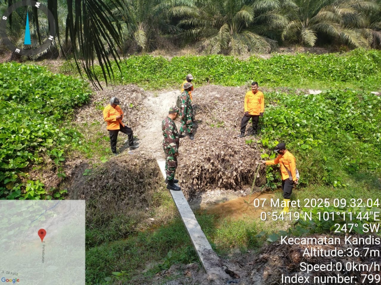 “Saat ini kami yang terdiri dari dua orang Babinsa tergabung bersama tiga orang masyarakat peduli api tempatan kegiatan patroli karhutla tepatnya diarea lahan rawan terbakar yang terletak di Kampung Sam Sam Kecamatan Kandis Kabupaten Siak,” ungkapnya.