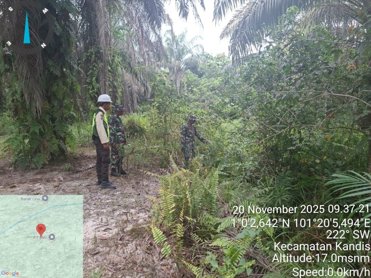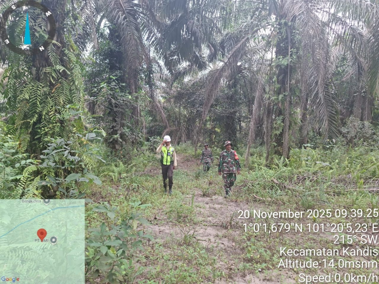 KANDIS – MATAHUKUM.ID – Babinsa Koramil 05/Pwk Kandis yaitu Sertu Korenus JU dan Koptu K. Sitohang melaksanakan kegiatan patroli karhutla di wilayah Kelurahan Kandis Kota Kecamatan Kandis Kabupaten Siak, Riau. Kamis, 20 November 2025.