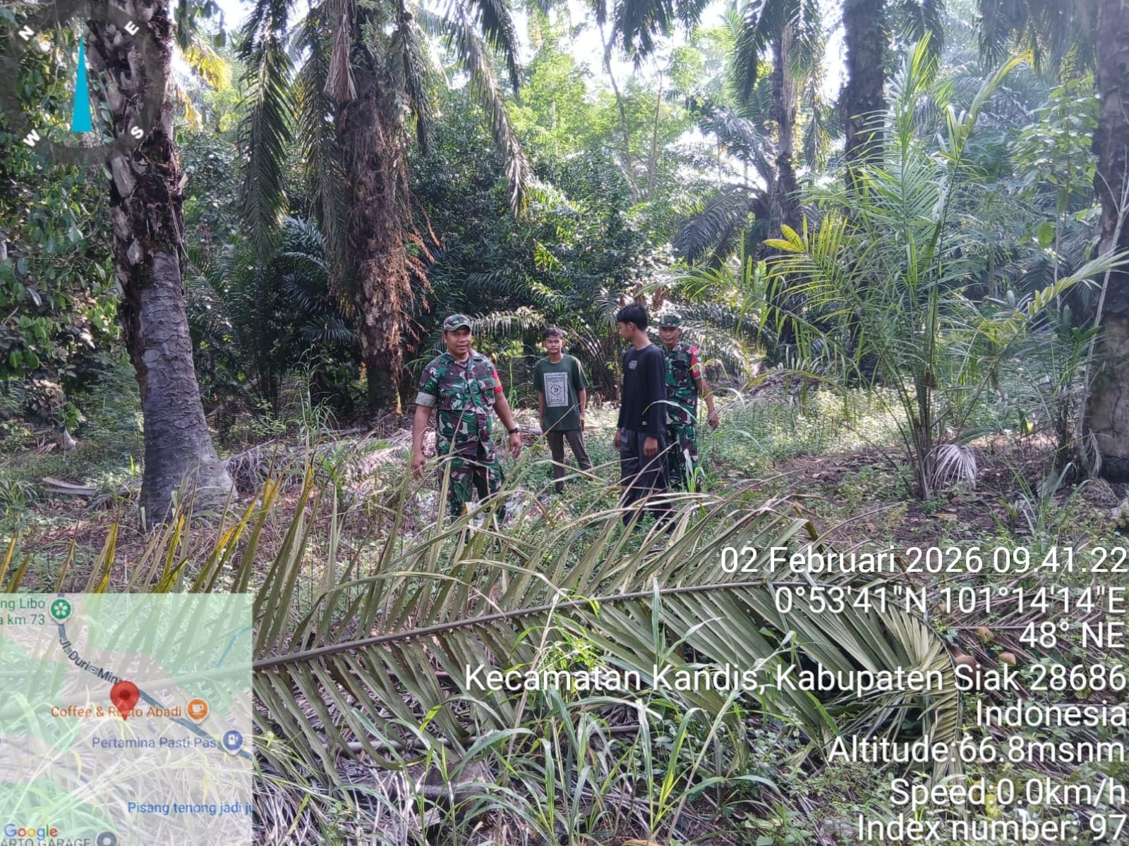 KANDIS – MATAHUKUM.ID – Babinsa Koramil 05/Pwk Kandis yaitu Peltu Rahman S dan Sertu Bosur Siregar melaksanakan kegiatan patroli karhutla di area lahan rawan terbakar yang berada di Kelurahan Telaga Sam Sam Kecamatan Kandis Kabupaten Siak, Riau. Senin, 2 Februari 2026.