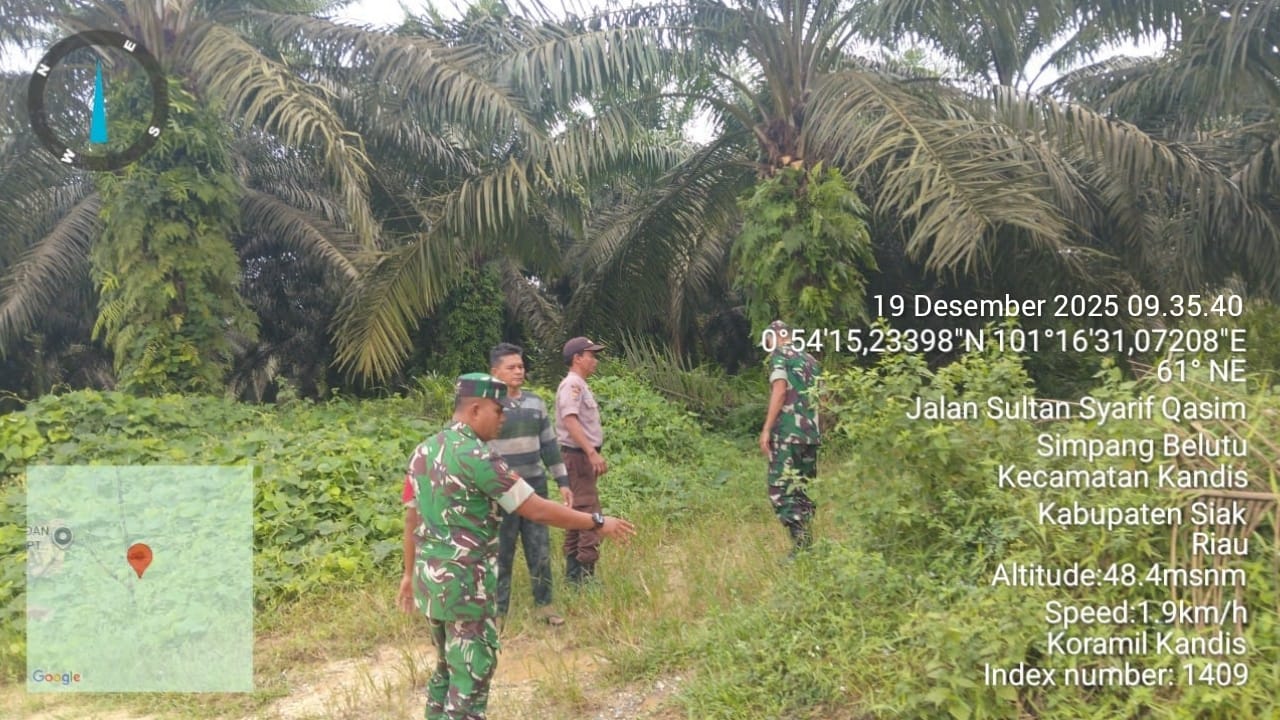 KANDIS – MATAHUKUM.ID – Babinsa Koramil 05/Pwk Kandis yaitu Sertu Suriyadi dan Koptu I Ketut Budiasa melaksanakan kegiatan patroli karhutla di wilayah Kelurahan Simpang Belutu Kecamatan Kandis Kabupaten Siak, Riau. Jumat, 19 Desember 2025.