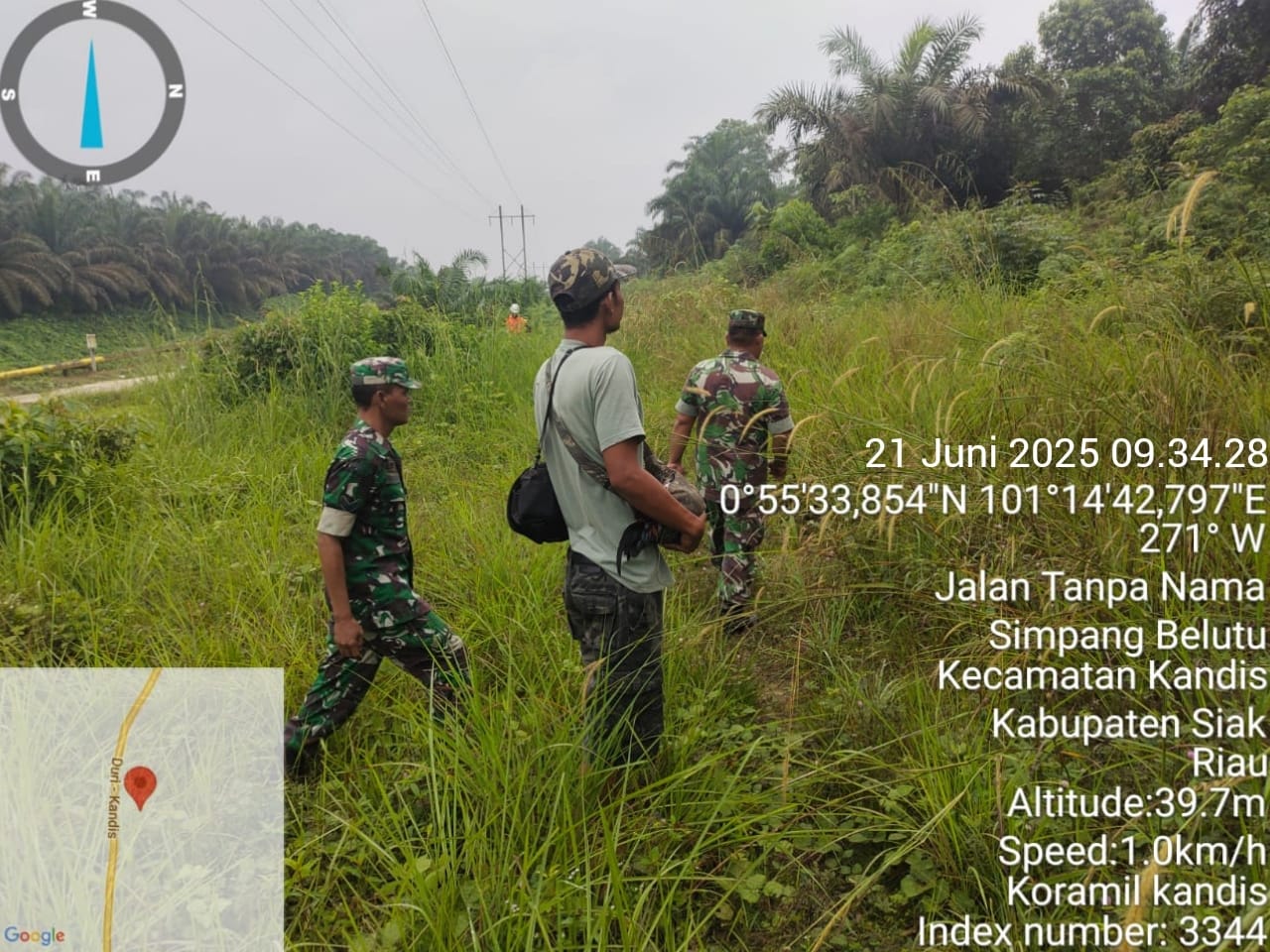 Babinsa Sertu Aprianto bersama rekannya Serda D. Gultom menyebutkan,” Bahwa hari ini disaat pihaknya bersama warga tempatan melaksanakan patroli karhutlah diarea lahan rawan terbakar di wilayah Kampung Sam Sam pada situasi kondisi cuaca cerah.