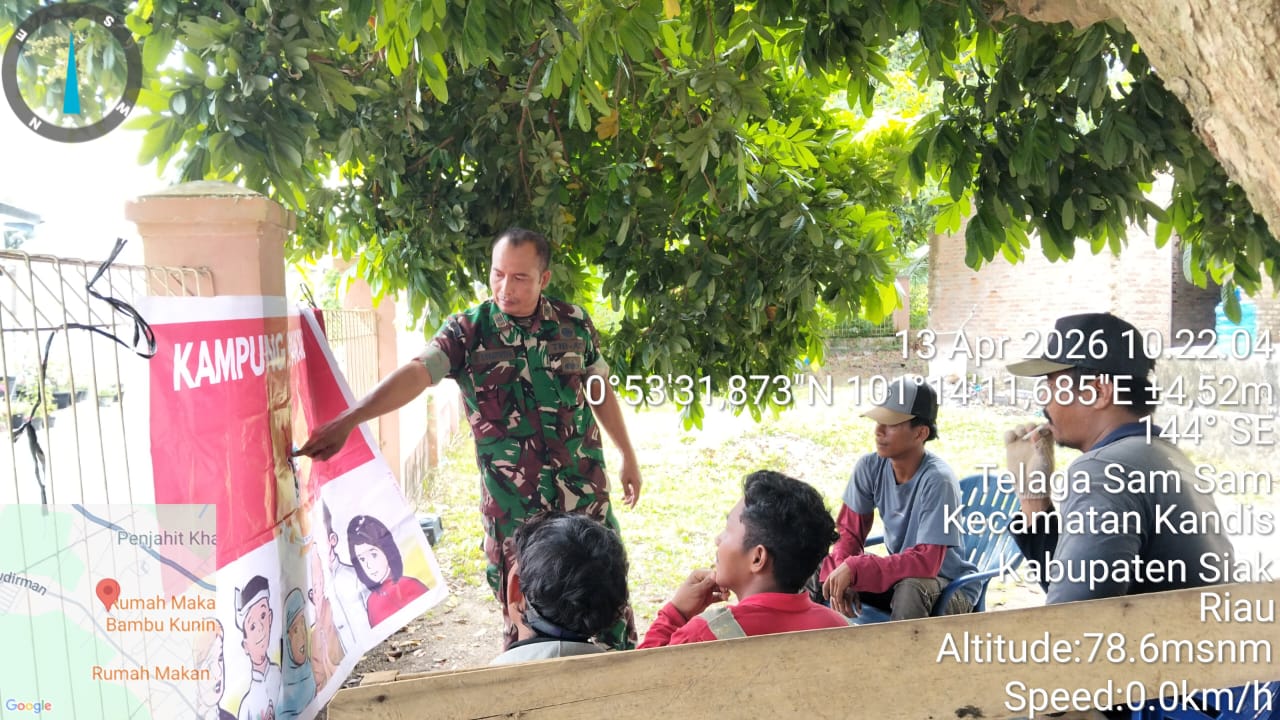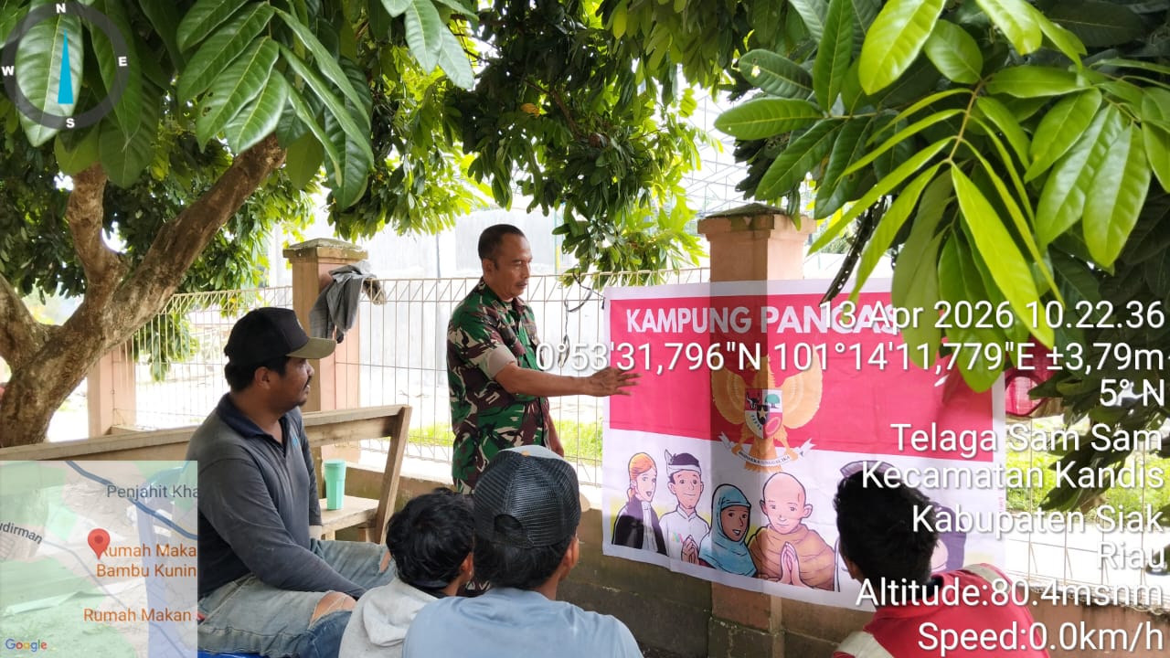 Kandis – Matahukum.id – Babinsa Koramil 05/Pwk Kandis Kodim 0322 /Siak, Peltu Rahman S melaksanakan Komsos serta menyampaikan tentang nilai – nilai Pancasila kepada sejumlah warga yang berada di Kelurahan Telaga Sam Sam Kecamatan Kandis Kabupaten Siak, Riau. Senin, 13 April 2026.