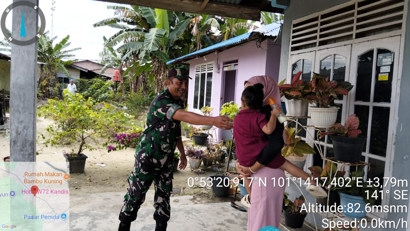 Pada saat pengecekan anak stunting melibatkan Babinsa Peltu Rahman S dan anak stunting yang didampingi oleh orang tuanya.