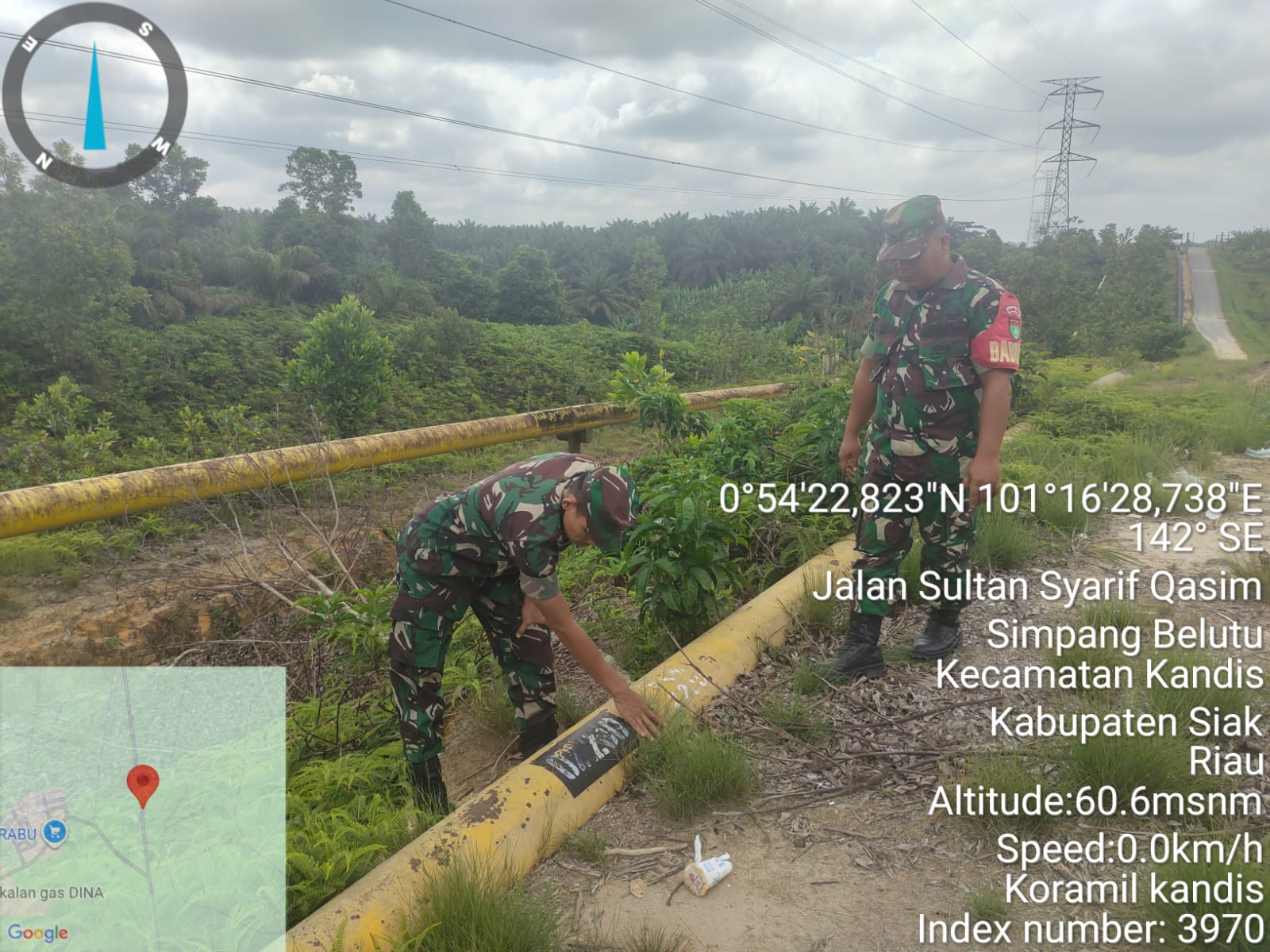 Babinsa Peltu Yus Armin dan Serda D. Gultom, Lakukan Giat Patroli Pengamanan Area Line Pipa Milik PHR