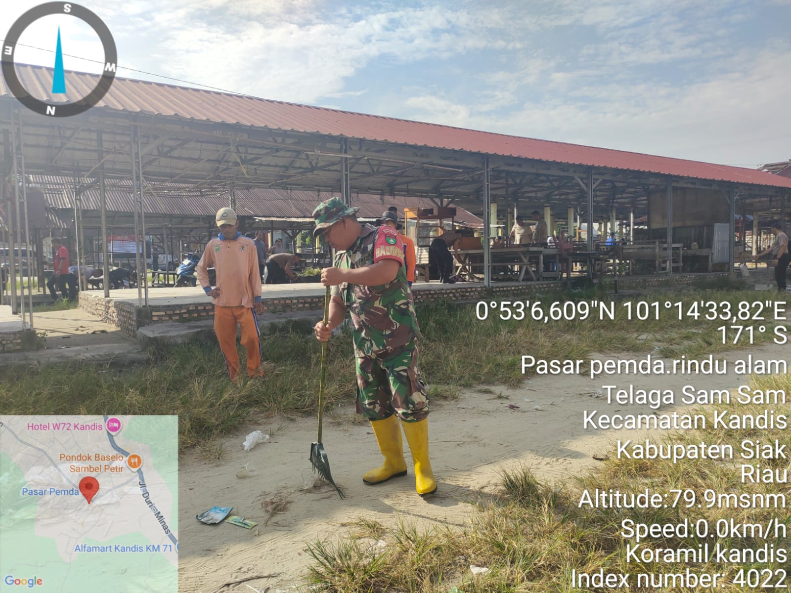 KANDIS – MATAHUKUM.ID – Babinsa Koramil 05/Kandis Kodim 0322 /Siak. Serda D. Gultom hari ini melaksanakan kegiatan gotong royong yaitu membantu melakukan pembersihan Pasar Pemda dengan warga di Kelurahan Telaga Sam Sam Kecamatan Kandis Kabupaten Siak, Riau. Sabtu, 28 Februari 2026.