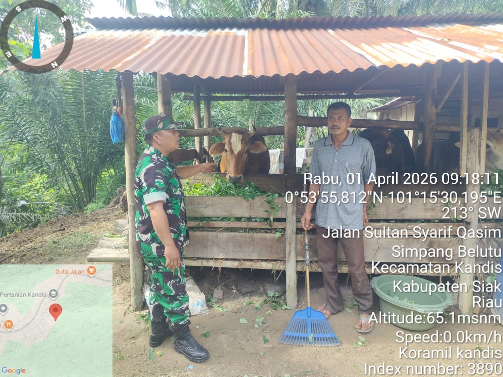 KANDIS – MATAHUKUM.ID – Babinsa Koramil 05/Pwk Kandis, Kodim 0322/Siak, Serda D. Gultom melaksanakan pendampingan Vaksinasi Penyakit Mulut dan Kuku (PMK) hewan sapi ternak di Kampung Sam Sam Kecamatan Kandis Kabupaten Siak, Riau. Rabu, 1 April 2026.