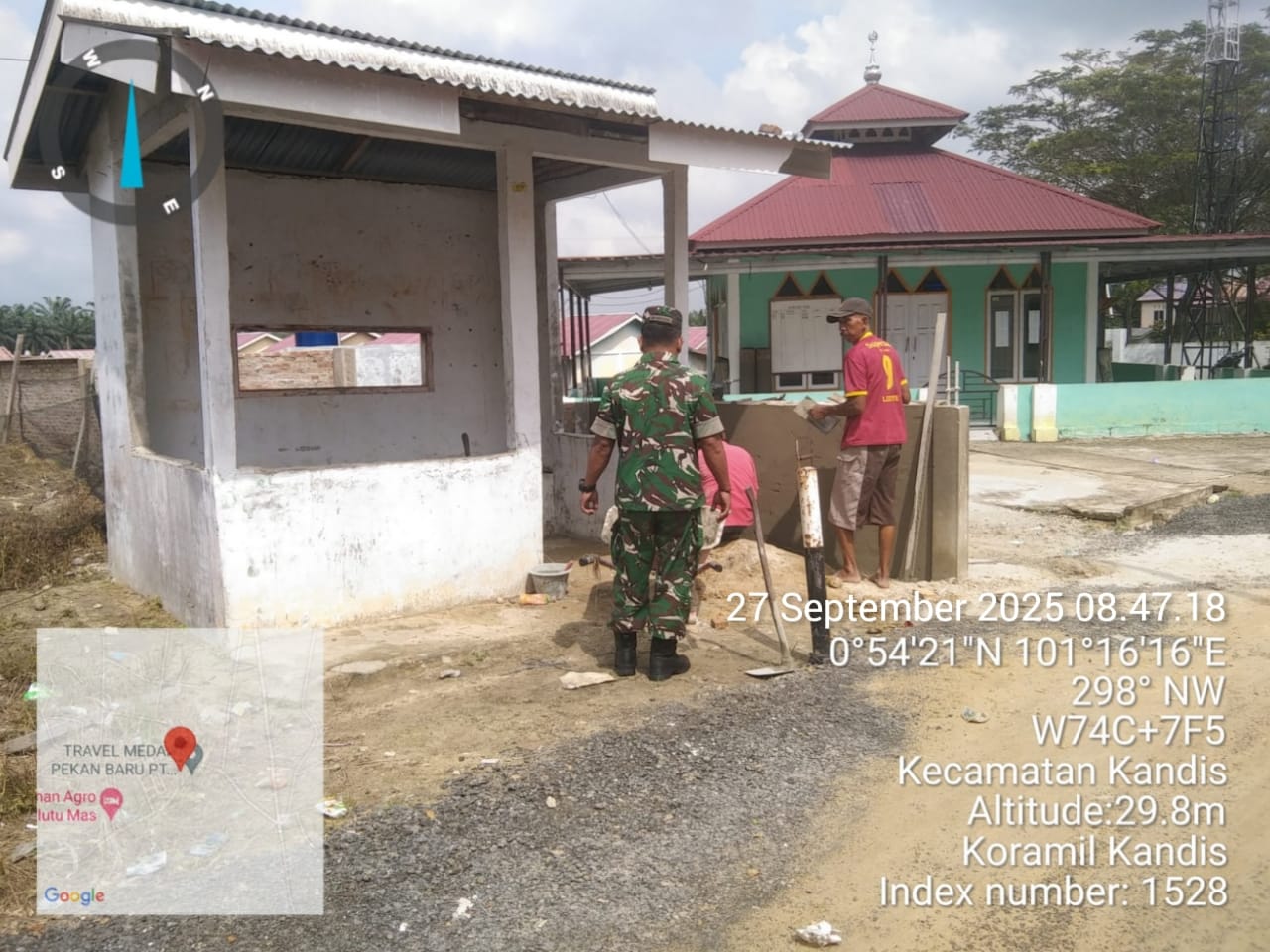 KANDIS – MATAHUKUM.ID – Babinsa Koramil 05/Kandis Kodim 0322 /Siak. Serda Edy Simanjuntak melaksanakan kegiatan gotong royong yaitu membantu melakukan perbaikan Pos Kamling di Kelurahan Kandis Kota Kecamatan Kandis Kabupaten Siak, Riau. Sabtu, 27 September 2025.