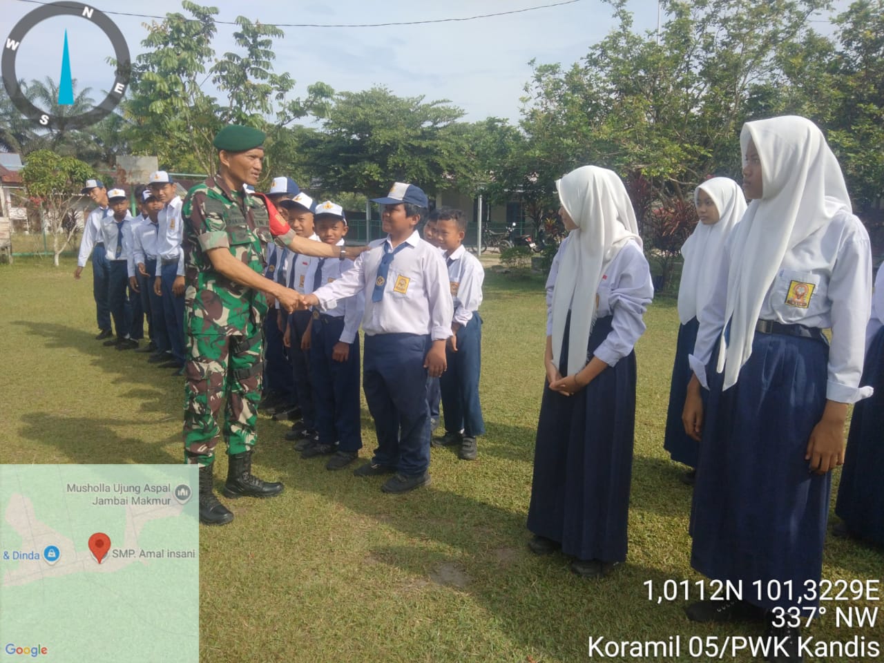 Adapun yang hadir dalam kegiatan Upacara Bendera pada hari Senin pagi tersebut adalah Kepala Sekolah SMPS Amal Insani,. Babinsa Kampung Jambai Makmur., Para Guru SMPS Amal Insani dan para Siswa Siswi SMPS Amal Insani.