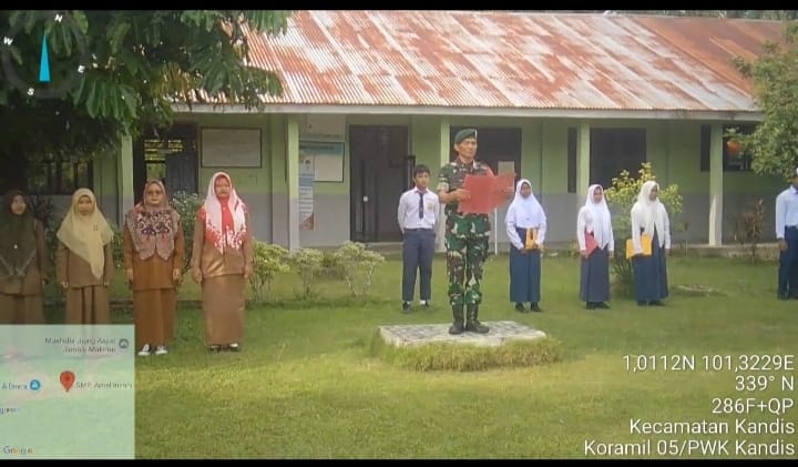 KANDIS – MATAHUKUM.ID – Pagi ini, Babinsa Koramil 05/Pwk Kandis yaitu Serda Roni panjaitan menghadiri Upacara Bendera Senin sebagai Pembina Upacara.