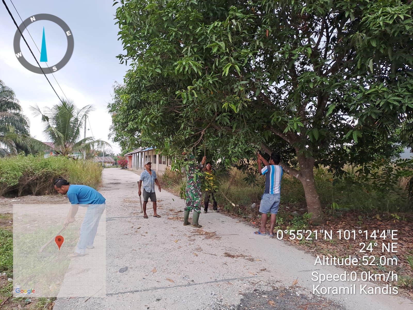 Menurut keterangan yakni Babinsa Serda Satria M,” Bahwa pagi ini pihaknya telah melakukan kegiatan gotong royong membantu membersihkan jalan milik warga di Kampung Libo Jaya.