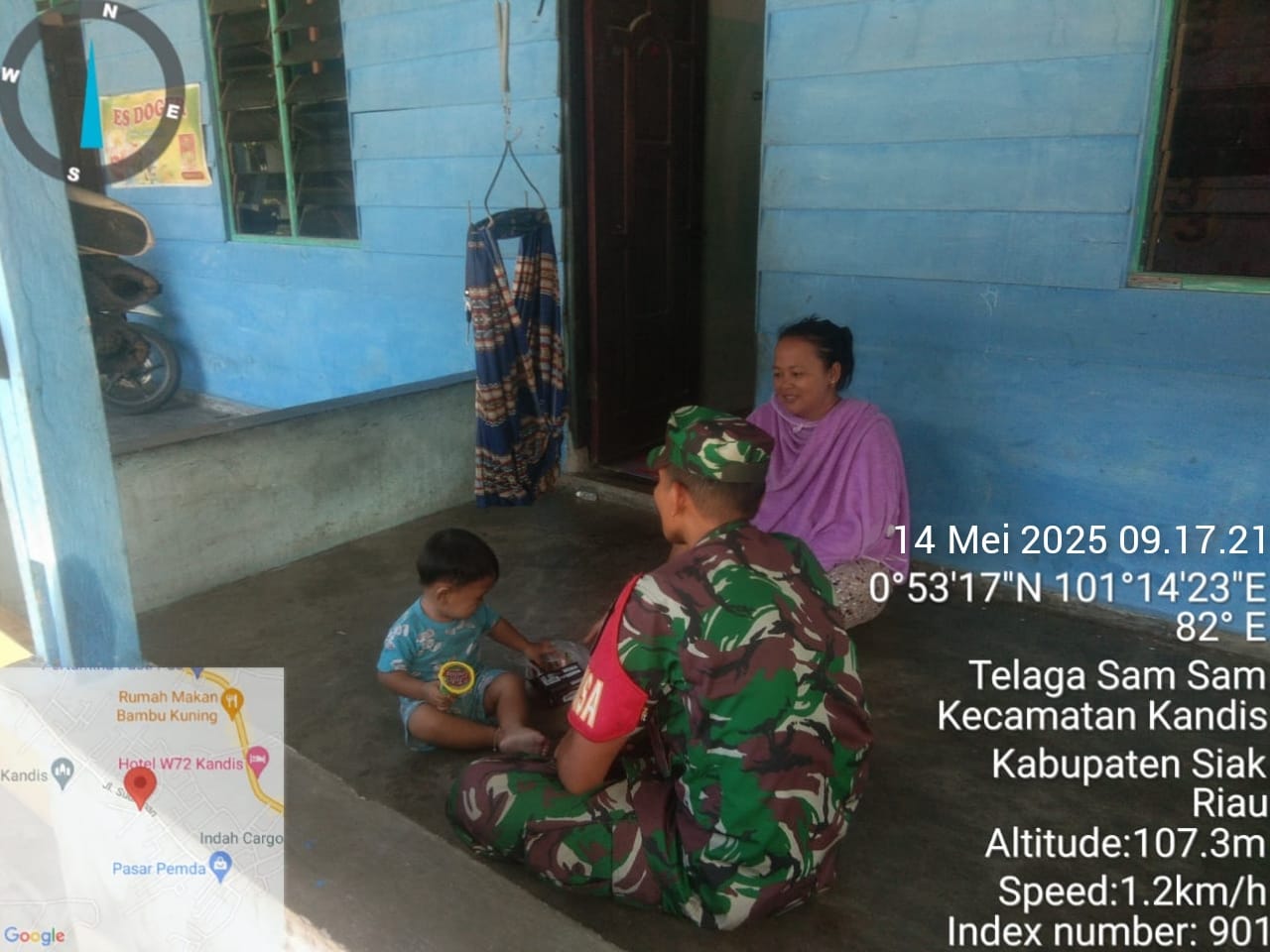 KANDIS – MATAHUKUM.ID – Dalam rangka memutus stunting di wilayah Kecamatan Kandis maka dari itu, Anggota Koramil 05/ Pwk Kandis Kodim 0322 /Siak yakni Babinsa Sertu Abdul Arfan melakukan pengecekan anak stunting yang terdapat di Kelurahan Telaga Sam Sam Kecamatan Kandis Kabupaten Siak, Riau. Rabu, 14 Mei 2025.