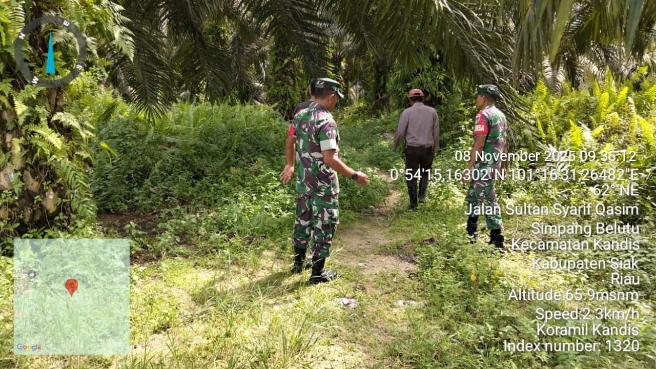 KANDIS – MATAHUKUM.ID – Babinsa Koramil 05/Pwk Kandis yaitu Sertu Abdul Arfan dan Kopda Dedi Irawan melaksanakan kegiatan patroli karhutla di wilayah Kelurahan Simpang Belutu Kecamatan Kandis Kabupaten Siak, Riau. Sabtu, 8 November 2025.
