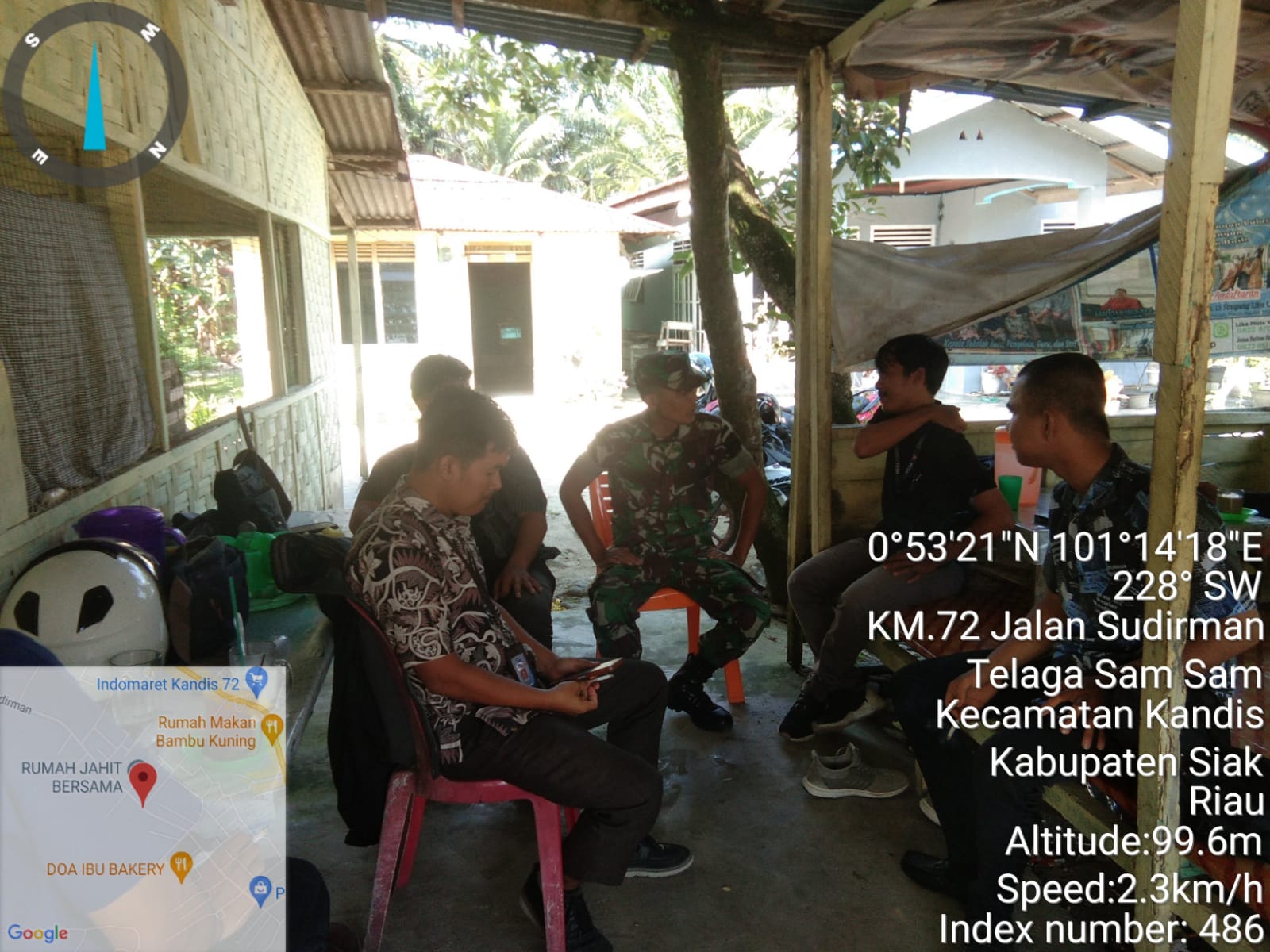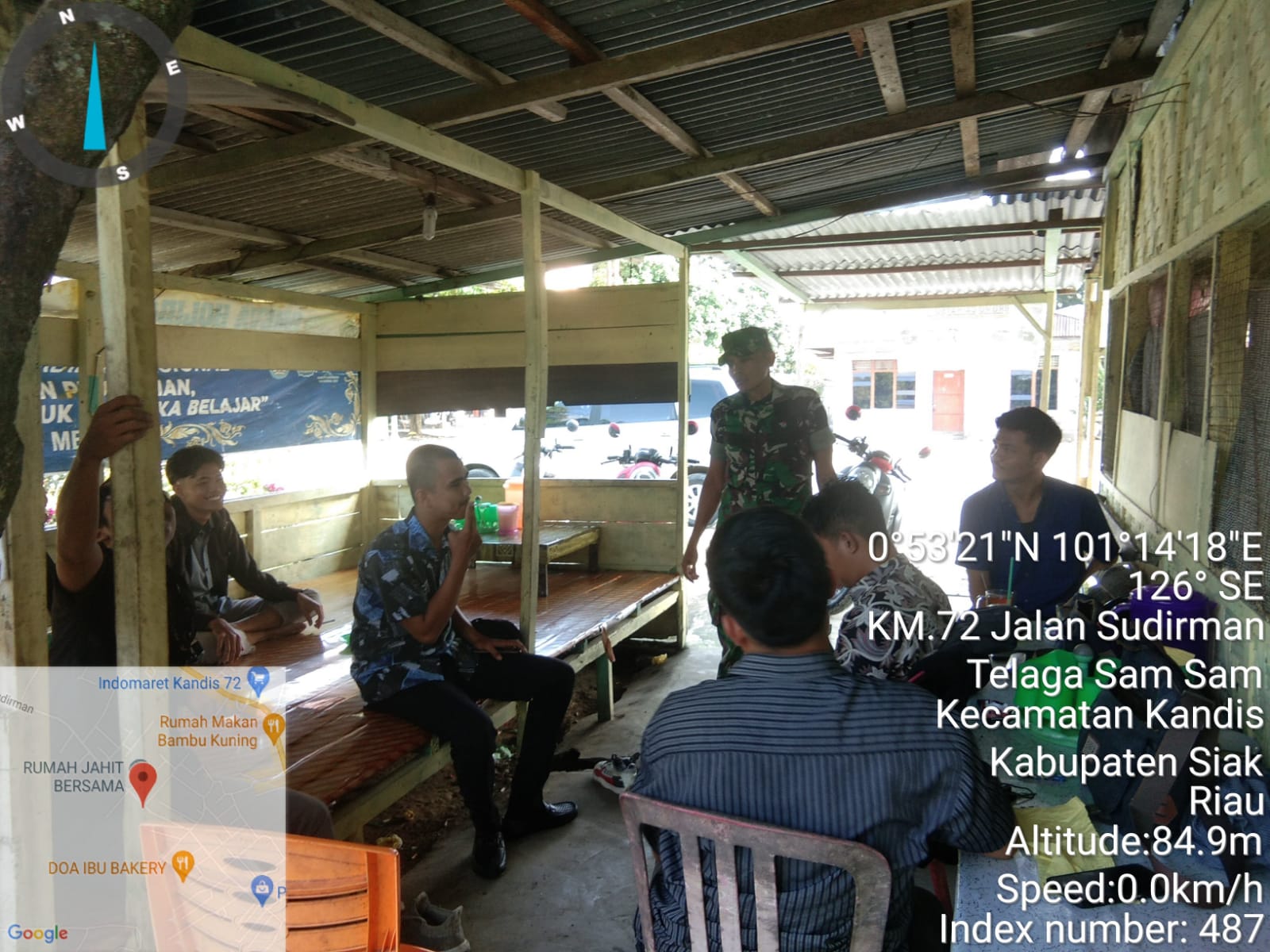 KANDIS – MATAHUKUM.ID – Babinsa Koramil 05/Pwk Kandis Kodim 0322 /Siak, Sertu Abdul Arfan melaksanakan Komsos bersama warga di Kelurahan Telaga Sam Sam Kecamatan Kandis Kabupaten Siak, Riau. Senin, 9 Juni 2025.