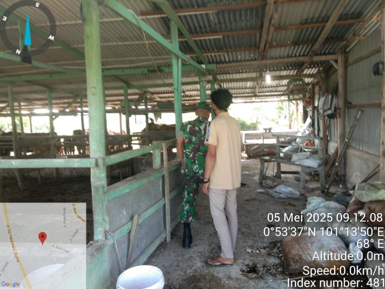 KANDIS – MATAHUKUM.ID – Babinsa Koramil 05/Pwk Kandis, Kodim 0322/Siak, Sertu Abdul Arfan hari ini melaksanakan pendampingan Vaksinasi Penyakit Mulut dan Kuku (PMK) hewan sapi ternak di Kelurahan Telaga Sam Sam Kecamatan Kandis Kabupaten Siak, Riau. Senin, 5 Mei 2025.