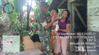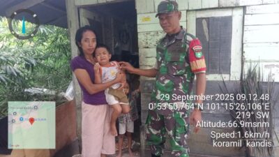 KANDIS – MATAHUKUM.ID – Dalam rangka memutus stunting di wilayah Kecamatan Kandis maka dari itu, Anggota Koramil 05/ Pwk Kandis Kodim 0322 /Siak yakni Babinsa Sertu Aprianto melakukan kegiatan pengecekan anak stunting yang terdapat di Kampung Sungai Gondang Kecamatan Kandis Kabupaten Siak, Riau. Senin, 29 September 2025.