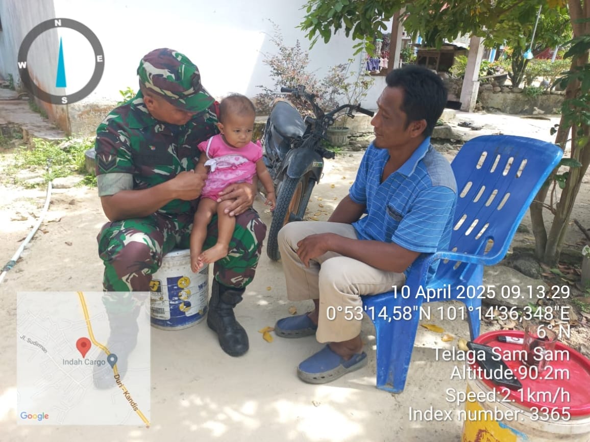 Pada saat pengecekan anak stunting melibatkan Babinsa Sertu Bosur Siregar dan anak stunting yang didampingi oleh orang tuanya.