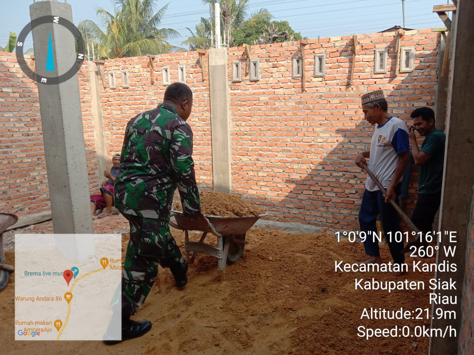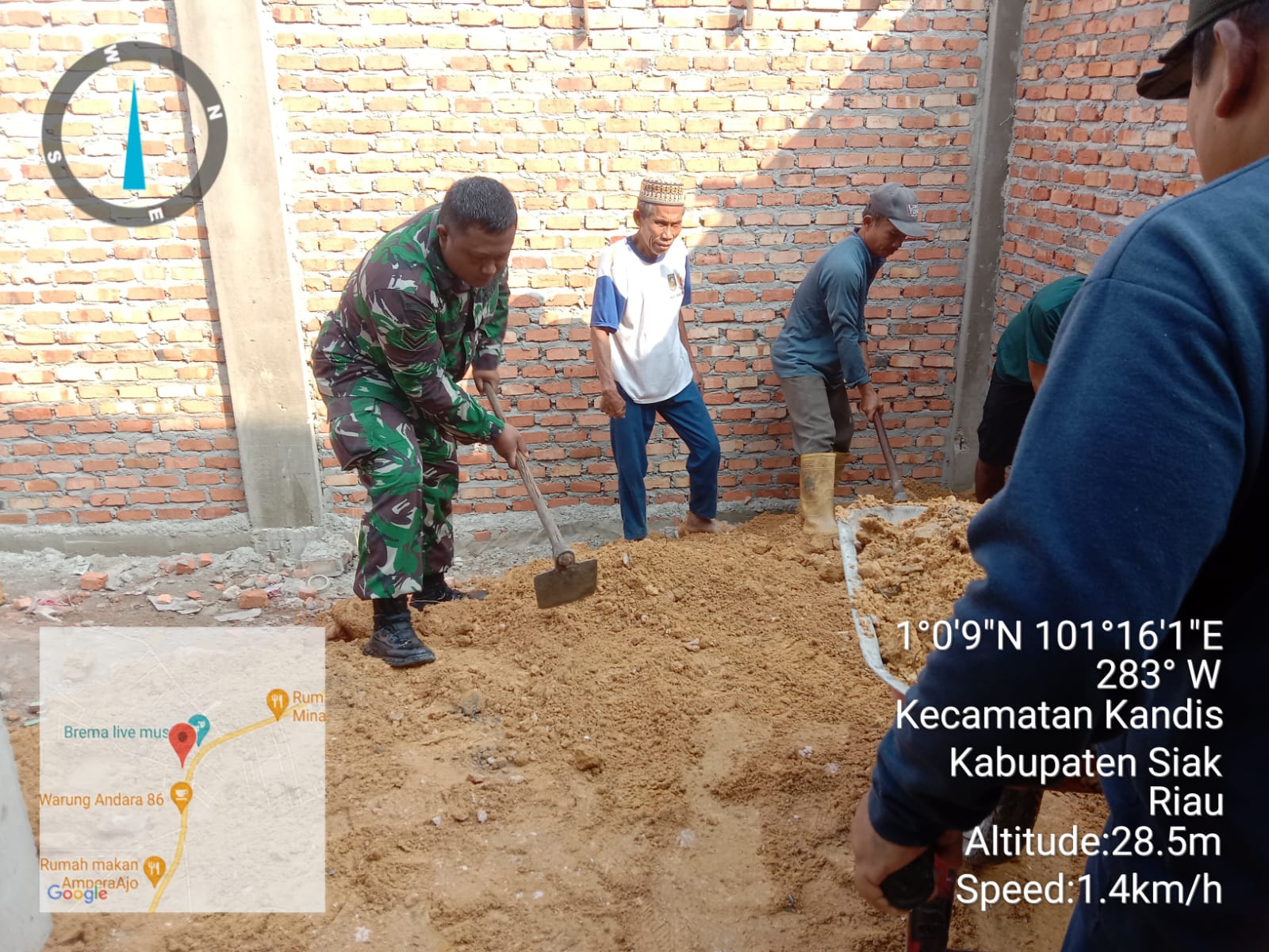 Menurut keterangan Babinsa Sertu Julia Darma,” Bahwa pagi ini pihaknya telah melakukan kegiatan gotong royong bersama beberapa warga yaitu membantu melakukan pembangunan Musholla yang terletak di Kelurahan Simpang Belutu.