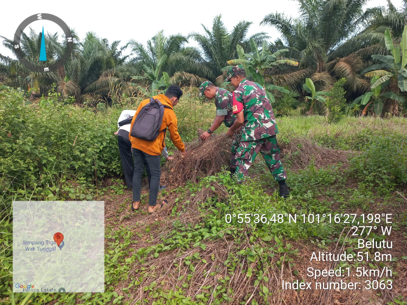KANDIS – MATAHUKUM.ID – Babinsa Koramil 05/Pwk Kandis, Sertu Julia Darma dan Sertu Abdul Arfan bersama warga tempatan melaksanakan kegiatan Patroli Kebakaran Hutan dan Lahan di sejumlah perkebunan serta lahan masyarakat yang dianggap rawan kebakaran diwilayah Kelurahan Simpang Belutu Kecamatan Kandis Kabupaten Siak, Riau. Minggu, 17 Agustus 2025.