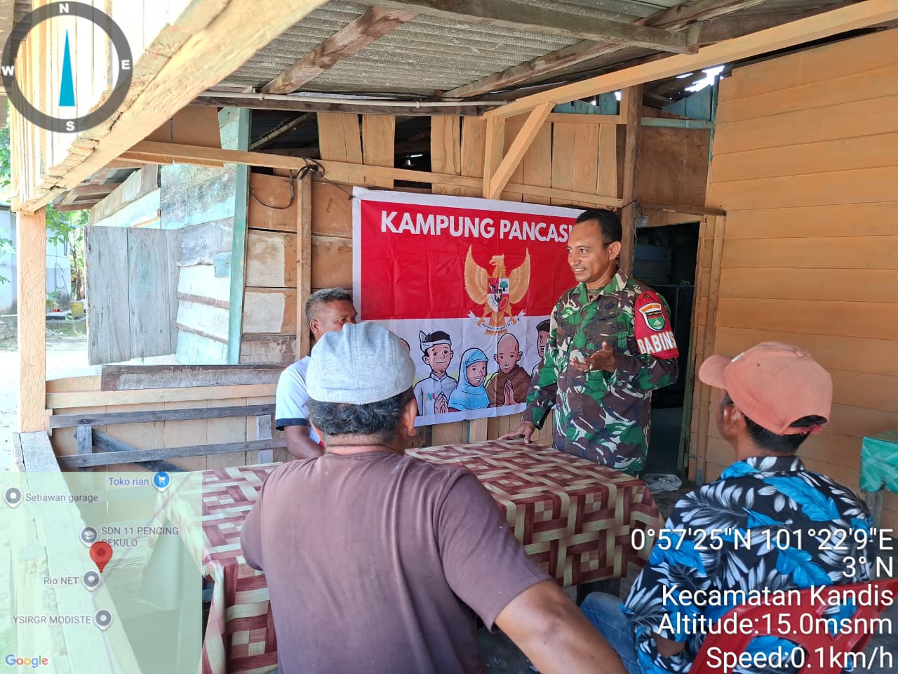 KANDIS – MATAHUKUM.ID – Babinsa Koramil 05/Pwk Kandis Kodim 0322 /Siak, Sertu Korenus JU melaksanakan Komsos serta menyampaikan tentang nilai – nilai Pancasila kepada sejumlah warga yang berada di Kelurahan Telaga Sam Sam Kecamatan Kandis Kabupaten Siak, Riau. Rabu, 11 Maret 2026.