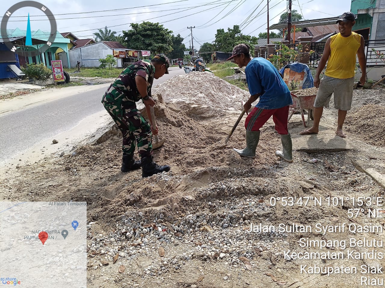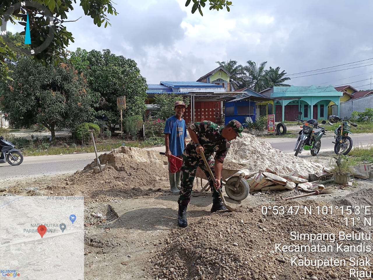 Menurut keterangan Babinsa Sertu Ridho Utomo,” Bahwa pagi ini pihaknya telah melakukan kegiatan gotong royong bersama beberapa warga membantu melakukan pembuatan rumah milik warga di Kampung Belutu.