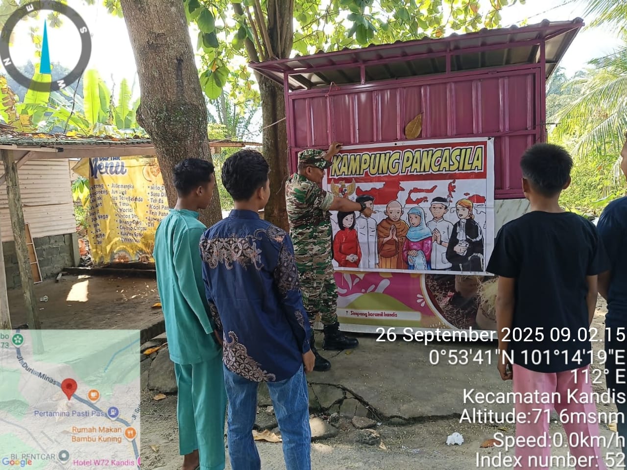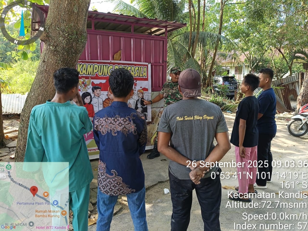 KANDIS – MATAHUKUM.ID – Babinsa Koramil 05/Pwk Kandis Kodim 0322 /Siak, Sertu Ridho Utomo melaksanakan Komsos serta menyampaikan tentang nilai – nilai Pancasila kepada sejumlah warga yang berada di Kelurahan Telaga Sam Sam Kecamatan Kandis Kabupaten Siak, Riau. Jumat, 26 September 2025.