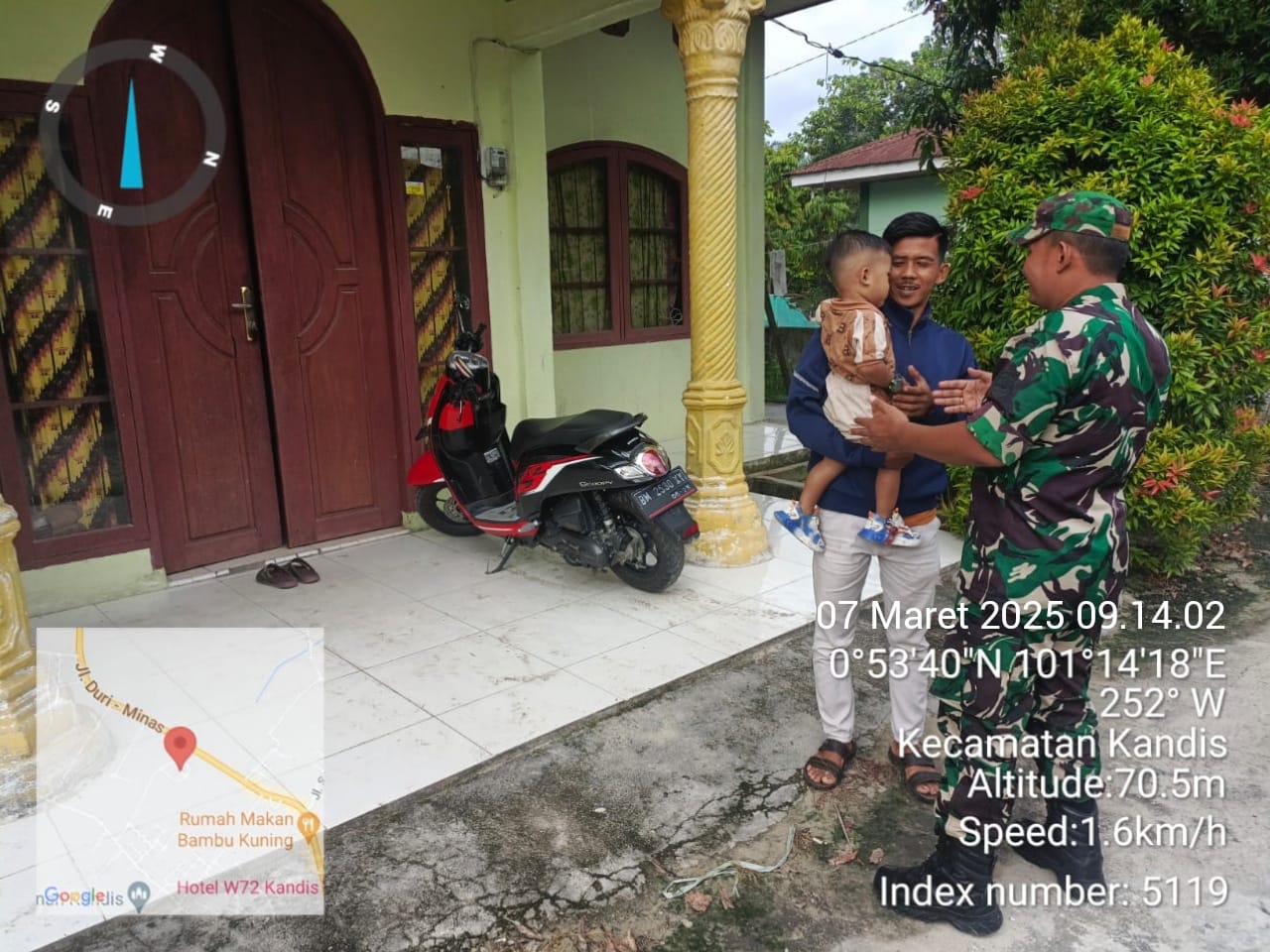 Kandis – Matahukum.id – Dalam rangka memutus stunting di wilayah Kecamatan Kandis maka dari itu, Anggota Koramil 05/ Pwk Kandis Kodim 0322 /Siak yakni Babinsa Sertu Ridho Utomo melakukan pengecekan anak stunting yang terdapat di Kampung Belutu Kecamatan Kandis Kabupaten Siak, Riau. Jumat, 7 Maret 2025.