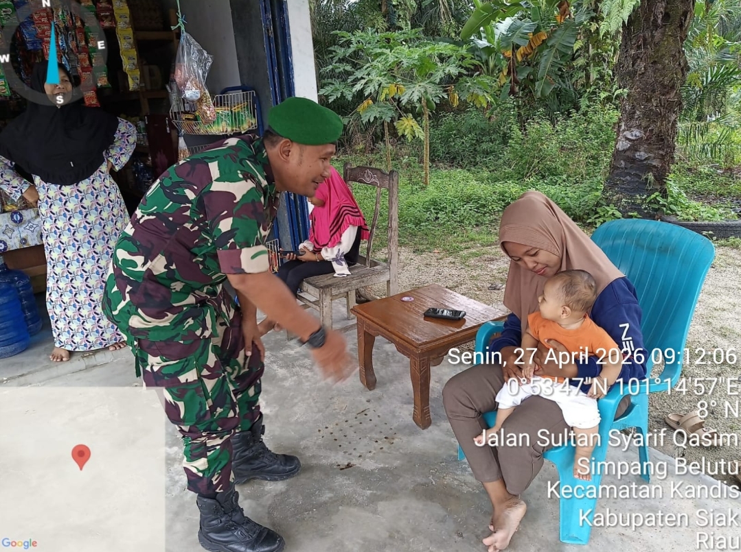KANDIS – MATAHUKUM.ID – Dalam rangka memutus stunting di wilayah Kecamatan Kandis maka dari itu, Koramil 05/ Pwk Kandis Kodim 0322 /Siak melalui Babinsa Sertu Ridho Utomo melaksanakan kegiatan pengecekan anak stunting yang terdapat di Kampung Belutu Kecamatan Kandis Kabupaten Siak, Riau. Senin, 27 April 2026.