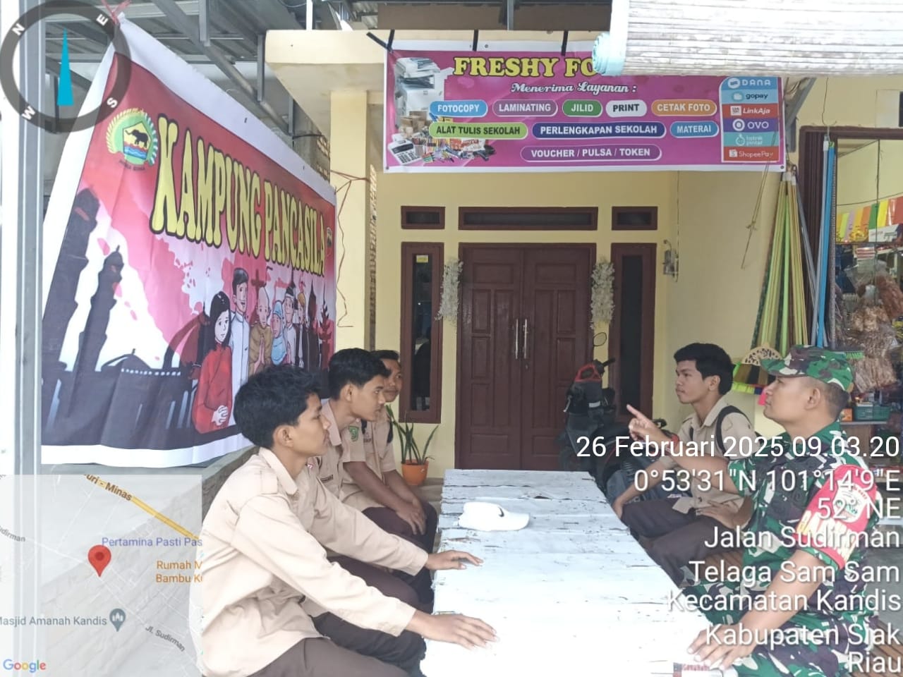 KANDIS – MATAHUKUM.ID – Babinsa Koramil 05/Pwk Kandis Kodim 0322 /Siak, Sertu Ridho Utomo melaksanakan Komsos serta menyampaikan tentang nilai – nilai Pancasila kepada bersama sejumlah siswa SMK Baiturrahman Kandis yang berdomisili di Kelurahan Telaga Sam Sam Kecamatan Kandis Kabupaten Siak, Riau. Rabu, 26 Februari 2025.