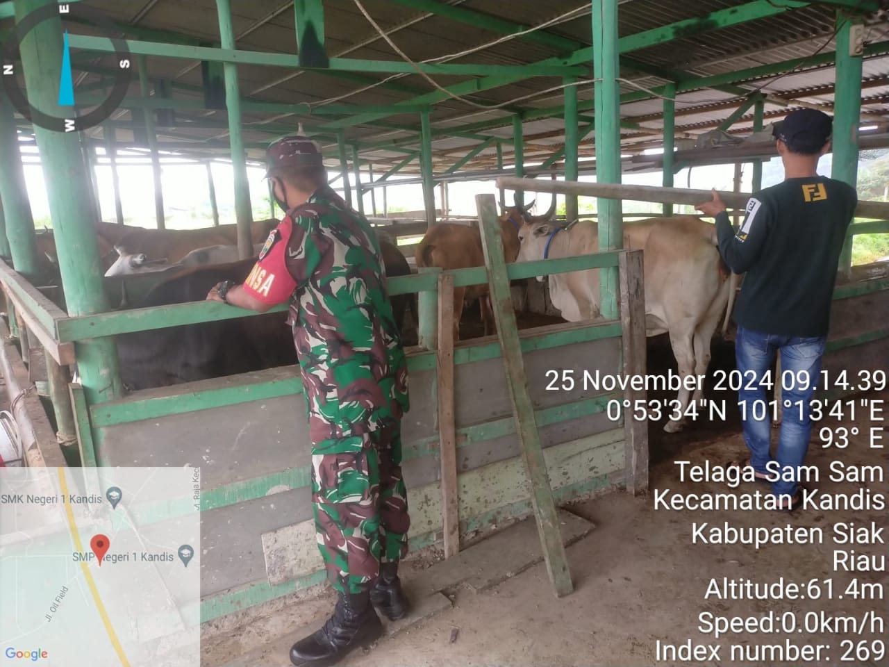 Oleh karena itu terkait hal ini saat kami selaku Babinsa setempat melakukan pendampingan vaksinasi hewan ternak sapi secara bergilir disejumlah Kampung dan Kelurahan khususnya diwilayah Koramil 05/Pwk Kandis, guna mencegah penularan dan penyebaran wabah PMK di Kecamatan Kandis ini.