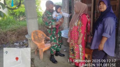 KANDIS – MATAHUKUM.ID – Dalam rangka memutus stunting di wilayah Kecamatan Kandis maka dari itu, Anggota Koramil 05/ Pwk Kandis Kodim 0322 /Siak yakni Babinsa Sertu Sutikno melakukan pengecekan anak stunting yang terdapat di Kampung Sam Sam Kecamatan Kandis Kabupaten Siak, Riau. Kamis, 11 September 2025.