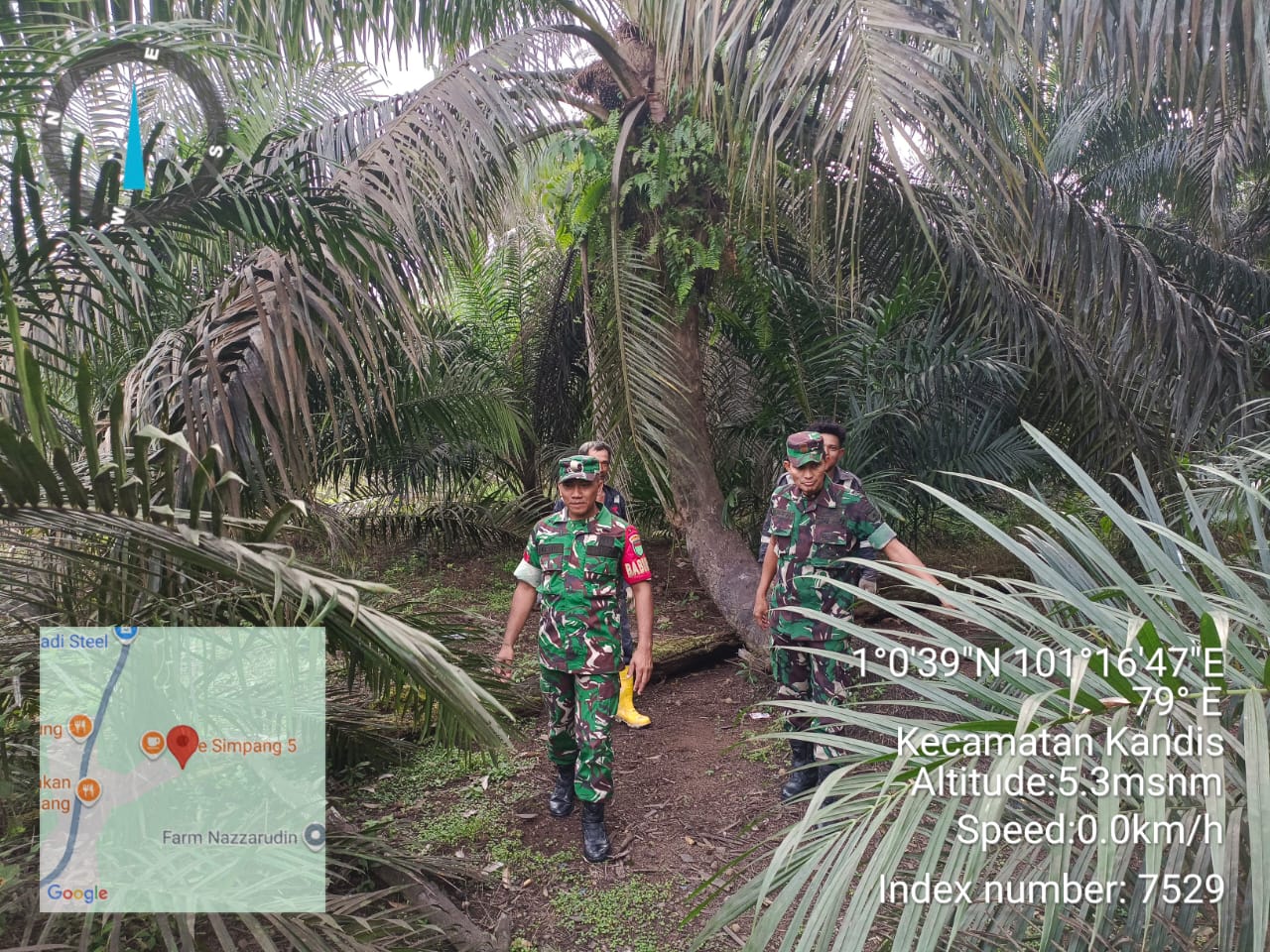 andis – matahukum.id – Babinsa Koramil 05/Pwk Kandis, Sertu Abdul Arfan dan Koptu I Ketut Budiasa bersama warga tempatan melaksanakan kegiatan Patroli Kebakaran Hutan dan Lahan di sejumlah perkebunan serta lahan masyarakat yang dianggap rawan kebakaran di wilayah Kampung Pencing Bekulo Kecamatan Kandis Kabupaten Siak, Riau. Minggu, 12 2026.