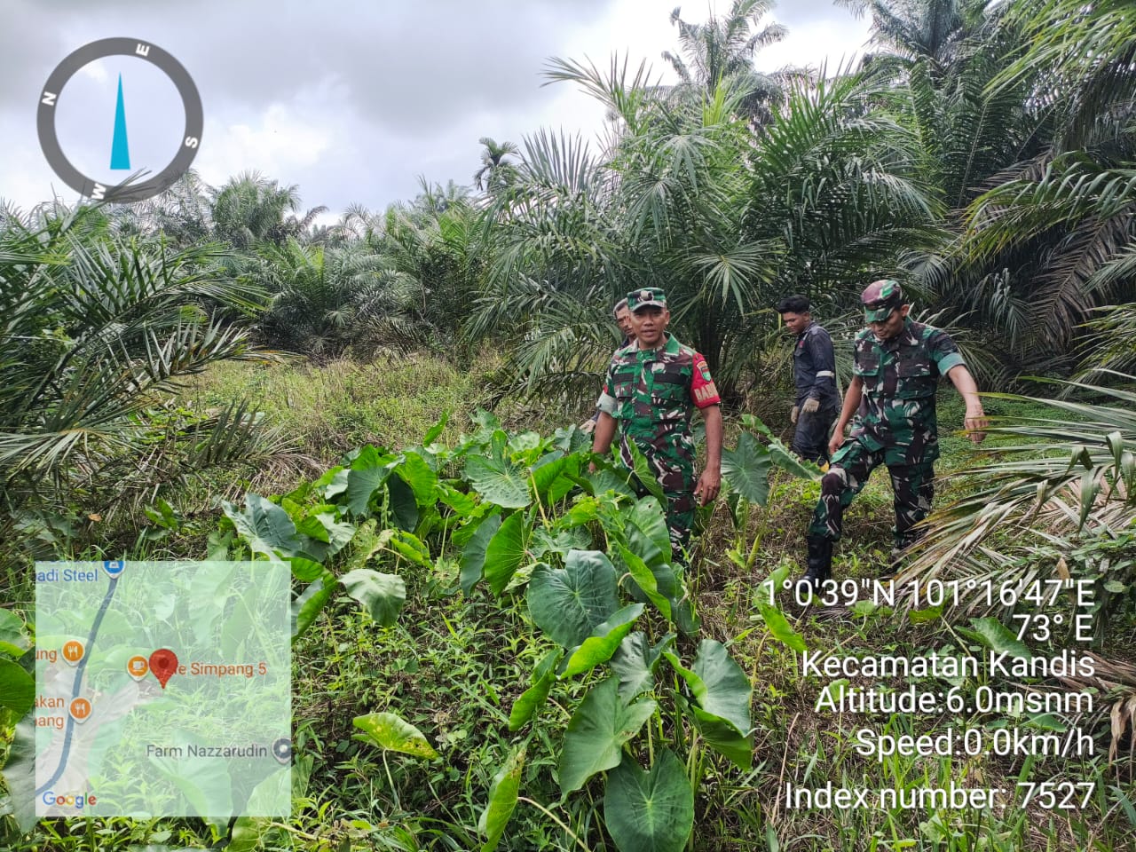 andis – matahukum.id – Babinsa Koramil 05/Pwk Kandis, Sertu Abdul Arfan dan Koptu I Ketut Budiasa bersama warga tempatan melaksanakan kegiatan Patroli Kebakaran Hutan dan Lahan di sejumlah perkebunan serta lahan masyarakat yang dianggap rawan kebakaran di wilayah Kampung Pencing Bekulo Kecamatan Kandis Kabupaten Siak, Riau. Minggu, 12 2026.