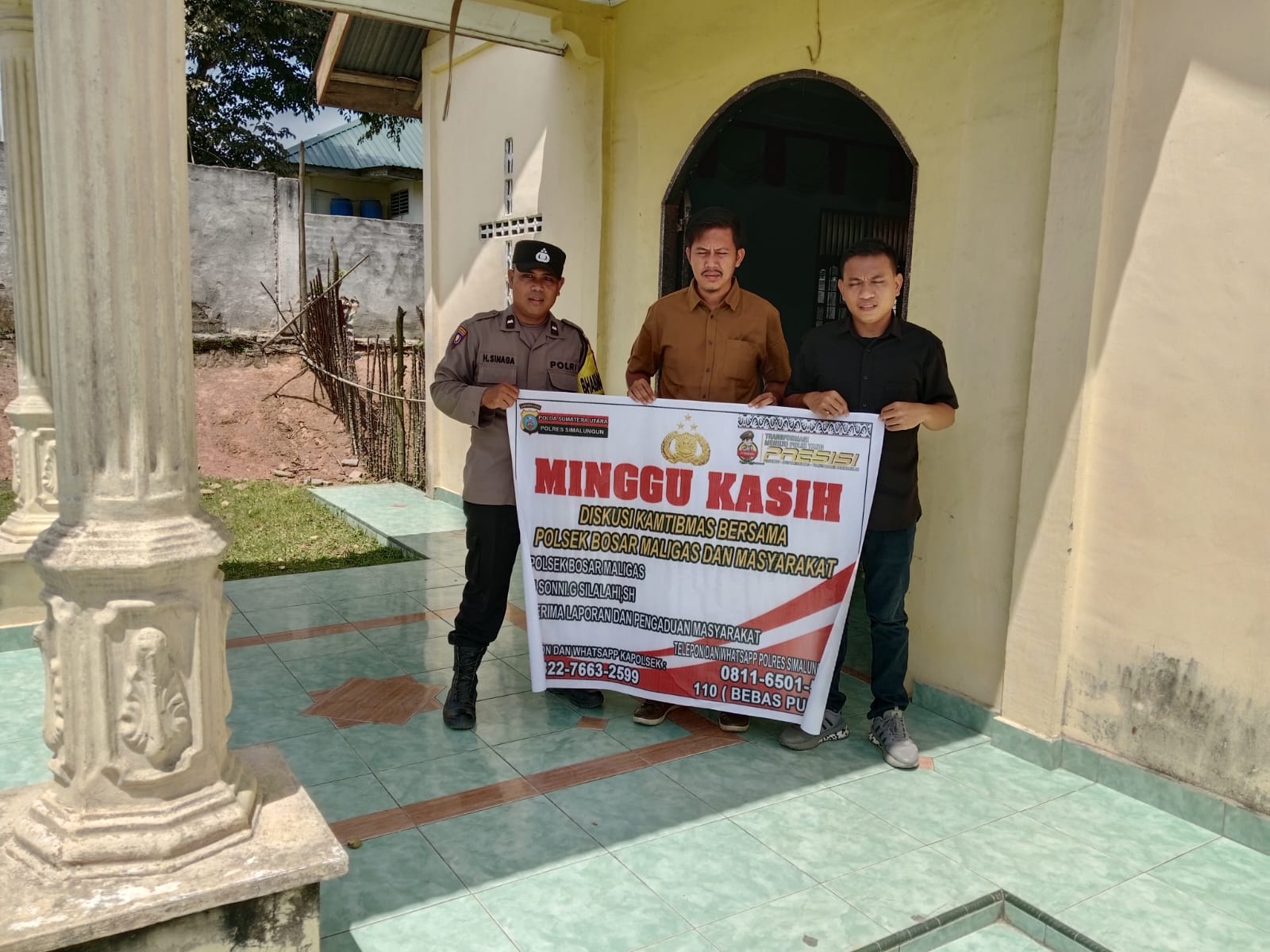 MATAHUKUM.ID/Bosar Maligas, Simalungun–12 Januari 2025 – Aipda H. Sinaga, Bhabinkamtibmas Polsek Bosar Maligas, melaksanakan kegiatan Minggu Kasih dan sambang/monitoring serta pengamanan tempat ibadah/gereja di Gereja GPdI Pasar Baru, Kelurahan Bosar Maligas, Kecamatan Bosar Maligas, Kabupaten Simalungun, pada Minggu (12/1/2025) pagi.