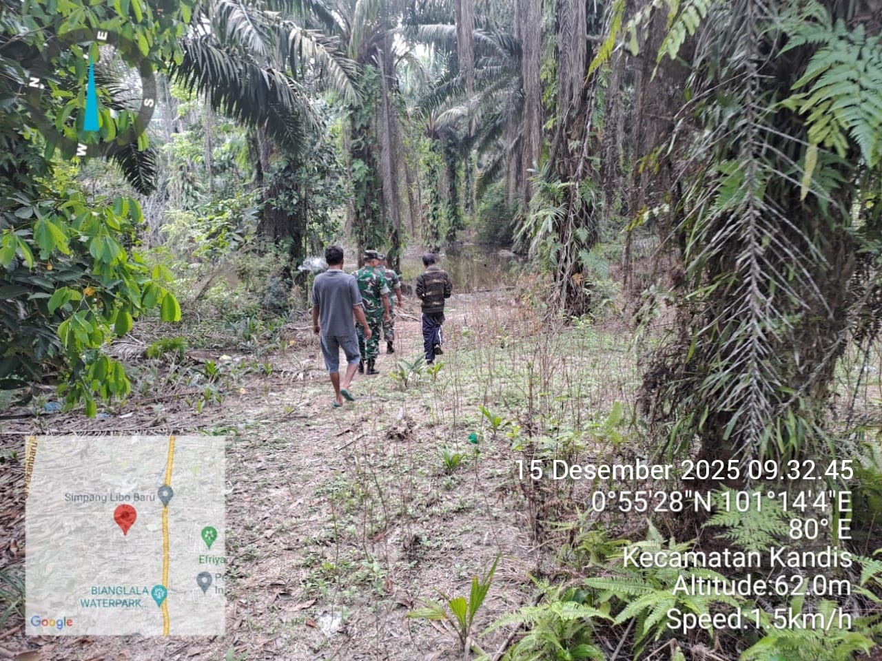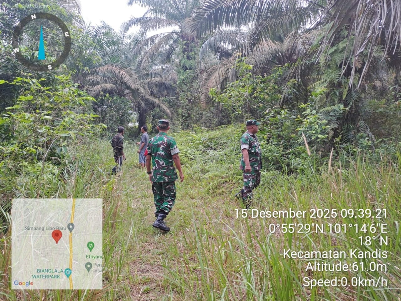 KANDIS – MATAHUKUM.ID – Babinsa Koramil 05/Pwk Kandis yaitu Sertu Abdul Arfan dan Serda Satria M melaksanakan kegiatan patroli karhutla di wilayah Kampung Libo Jaya Kecamatan Kandis Kabupaten Siak, Riau. Senin, 15 Desember 2025.