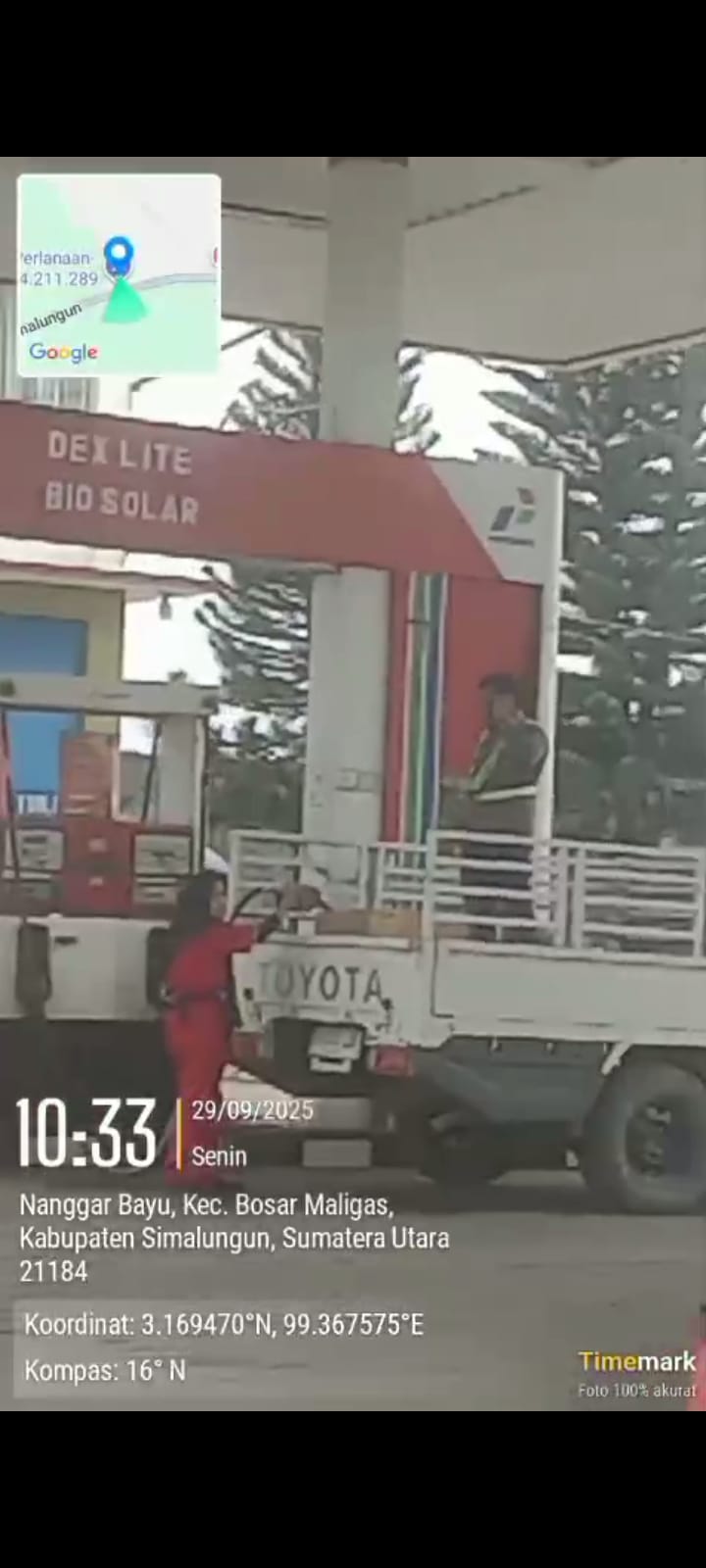 MATAHUKUM.ID/SIMALUNGUN--Sebuah SPBU Pertamina dengan nomor 14211289 yang berlokasi di Nanggar baru, kecamatan Bosar Maligas, kabupaten Simalungun, Senin, 29 September 2025, pukul 10.32 WIB, terlihat bebas melakukan penjualan dengan pembelian skala besar memakai jerigen, lebih kurang 15 derigen dengan pengangkutan mobil Toyota berwarna putih nomor plat BK 8088 LOK