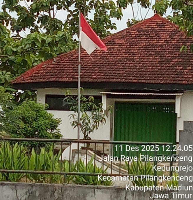 MATAHUKUM.ID/MADIUN – Kantor Kebun Benih Kedungrejo, Kecamatan Pilangkenceng, Madiun, Jawa Timur, kedapatan mengibarkan bendera Merah Putih sekenanya. Tegasnya sang saka itu dalam kondisi tercabik-cabik dan lusuh, pada Kamis (11/12/2025) pukul 12.23.53 detik.
