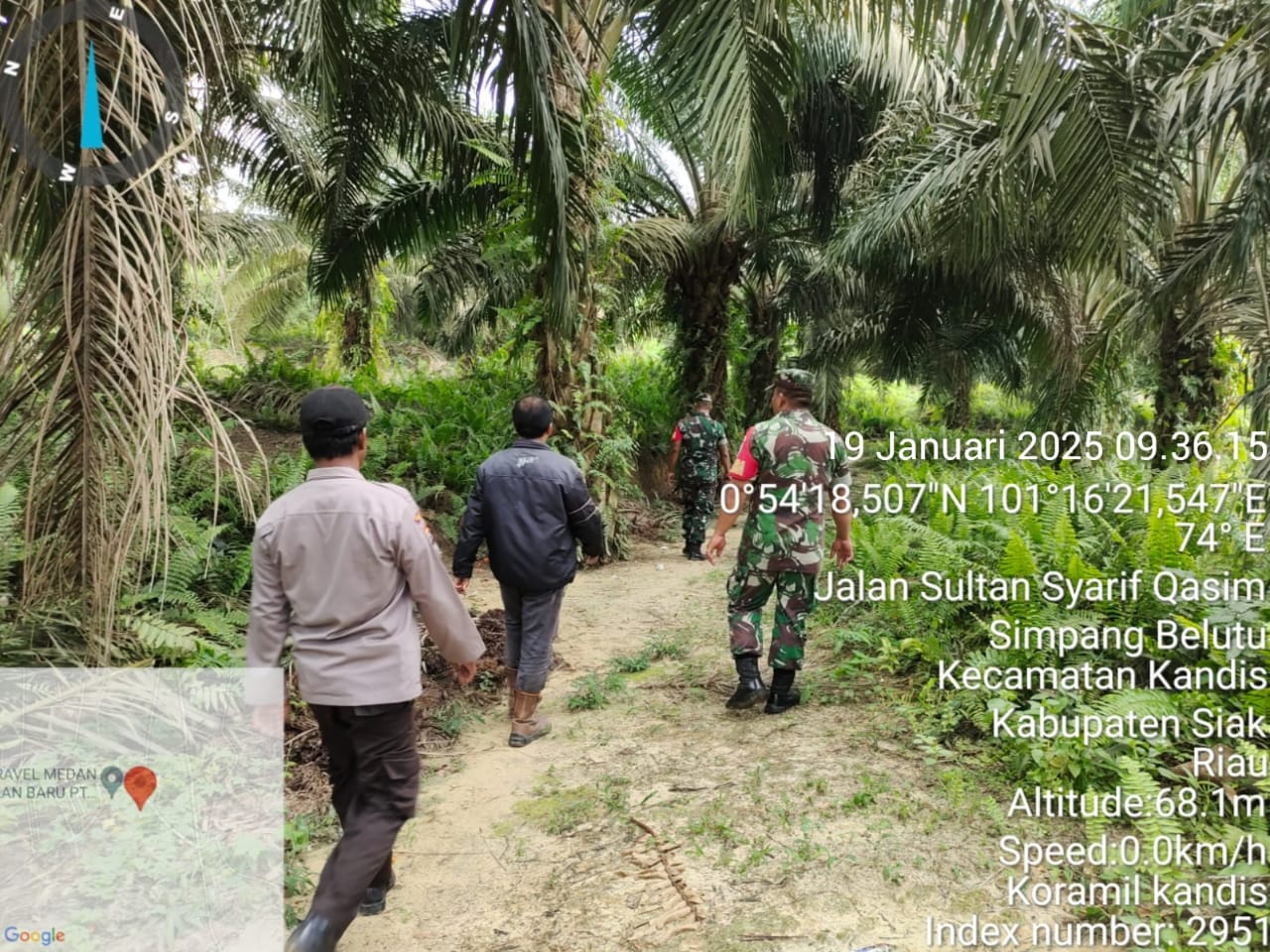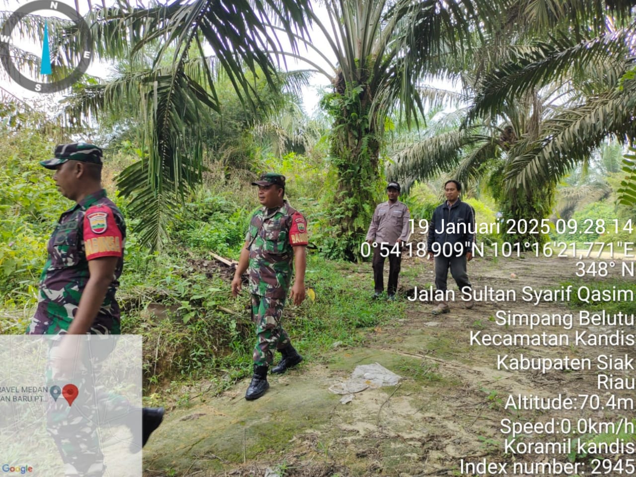 Kandis – matahukum.id – Babinsa Koramil 05/Pwk Kandis, Sertu Korenus JU dan Serda D. Gultom bersama dua orang warga tempatan melaksanakan kegiatan patroli Kebakaran Hutan dan Lahan di sejumlah perkebunan serta lahan masyarakat yang dianggap rawan terbakar hari ini diwilayah Kelurahan Simpang Belutu Kecamatan Kandis Kabupaten Siak, Riau. Minggu, 19 Januari 2025.