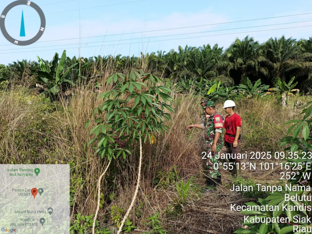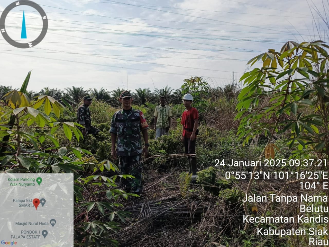 Kandis – matahukum.id – Babinsa Koramil 05/Pwk Kandis, Sertu Suriyadi dan Sertu Ridho Utomo bersama dua orang warga melaksanakan kegiatan patroli Kebakaran Hutan dan Lahan di sejumlah perkebunan serta lahan masyarakat yang dianggap rawan terbakar hari ini diwilayah Kampung Bekalar Kecamatan Kandis Kabupaten Siak, Riau. Jumat, 24 Januari 2025.