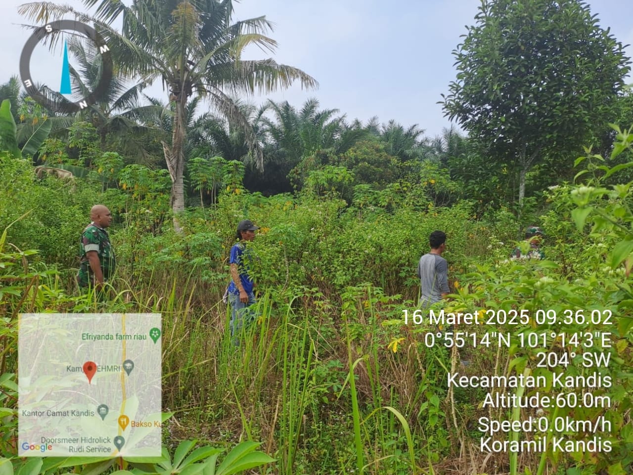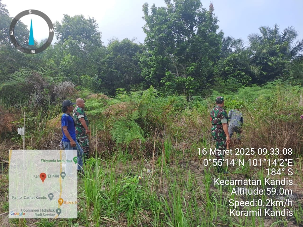 KANDIS – MATAHUKUM.ID – Babinsa Koramil 05/Pwk Kandi yaitu Sertu Korenus JU dan Serda Satria M bersama dua orang warga tempatan melaksanakan kegiatan rutin yaitu berpatroli karhutlah diarea lahan rawan terbakar hari ini di wilayah Kampung Libo Jaya Kecamatan Kandis Kabupaten Siak, Riau. Minggu, 16 Maret 2025.