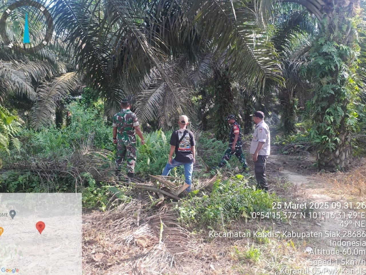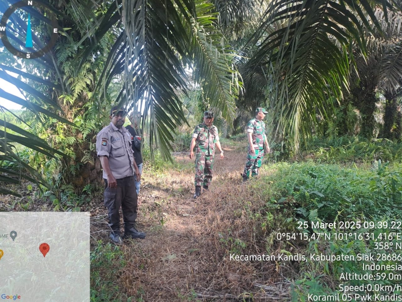 KANDIS – MATAHUKUM.ID – Babinsa Koramil 05/Pwk Kandi yaitu Sertu Andi Satria dan Serda Edy Simanjuntak bersama dua orang warga tempatan melaksanakan kegiatan rutin yaitu berpatroli karhutlah diarea lahan rawan terbakar hari ini di wilayah Kelurahan Telaga Sam Sam Kecamatan Kandis Kabupaten Siak, Riau. Selasa, 25 Maret 2025.