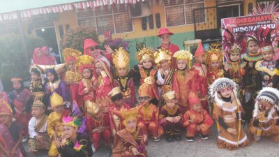 Siswa-siswi SDN 9 Mandau mengenakan pakaian adat lengkap masing-masing daerah kemudian arak-arakan keliling kota Duri Kecamatan Mandau Kabupaten Bengkalis – Riau.