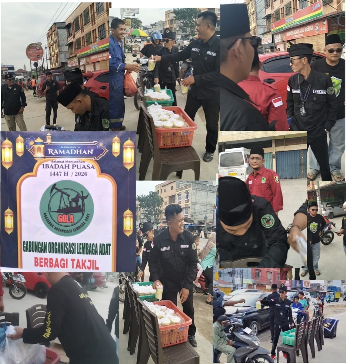 DURI,( Matahukum.id)– Semangat kepedulian dan kebersamaan mewarnai kawasan Jalan Jenderal Sudirman, Duri, pada Selasa (24/2/2026) sore. Gabungan Organisasi Lembaga Adat (GOLA) menggelar aksi sosial dengan membagikan 1.000 paket takjil gratis kepada masyarakat dan pengguna jalan yang melintas di area Garoga.