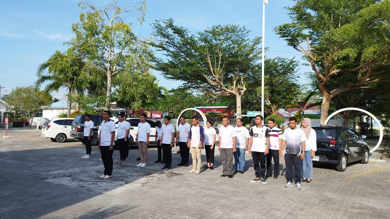 Apel pagi berlangsung tertib dan penuh semangat, kemudian diakhiri dengan momen saling bersalaman antarpetugas dan pimpinan sebagai bentuk kebersamaan dan semangat kekeluargaan dalam menjalankan tugas pengabdian.