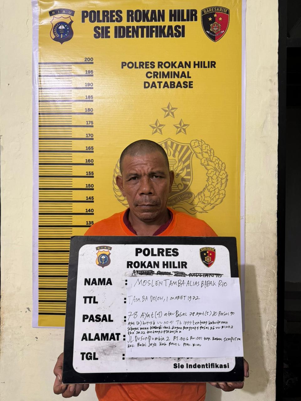 Matahukum.id/Rohil–Polres Rohil bergerak cepat mengungkapan pelaku tidak pidana pembakaran hutan dan lahan,hasil penyelidikan sementara lahan yang terbakar seluas 7 H diduga pelakunya Molsen Tamba.
