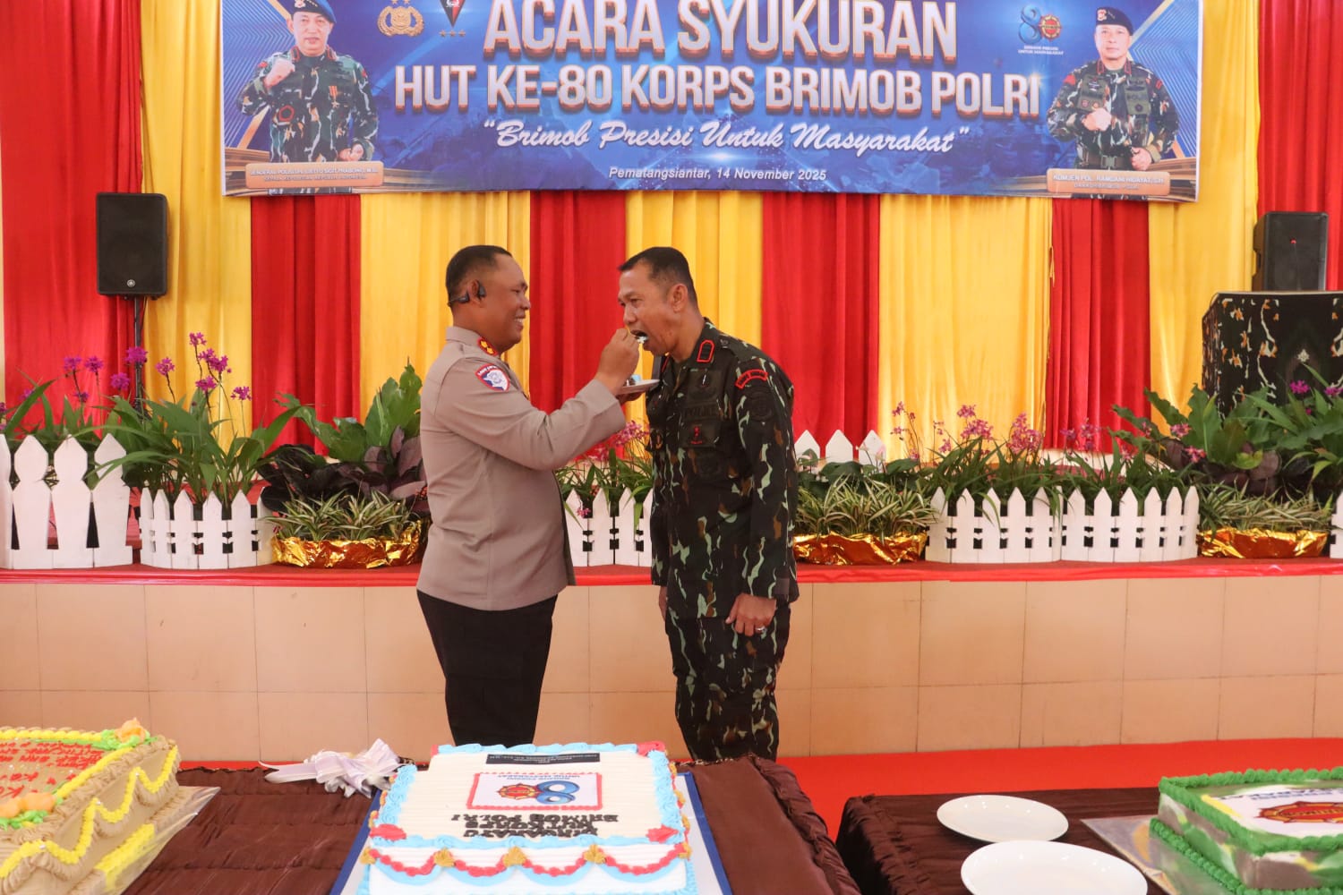 MATAHUKUM.ID/SIMALUNGUN-PEMATANGSIANTAR – Kapolres Simalungun AKBP Marganda Aritonang, S.H., S.I.K., M.M., bersama jajaran Polres Simalungun menghadiri acara puncak peringatan dan syukuran Hari Ulang Tahun ke-80 Korps Brigade Mobil Kepolisian Negara Republik Indonesia (Brimob Polri) yang digelar di Aula Sugiono Kompi 2 Batalyon B Sat Brimob Polda Sumatera Utara, Jalan Medan, Kecamatan Siantar Timur, Kota Pematangsiantar, pada hari Jumat, 14 November 2025, mulai pukul 09.00 WIB hingga selesai.
