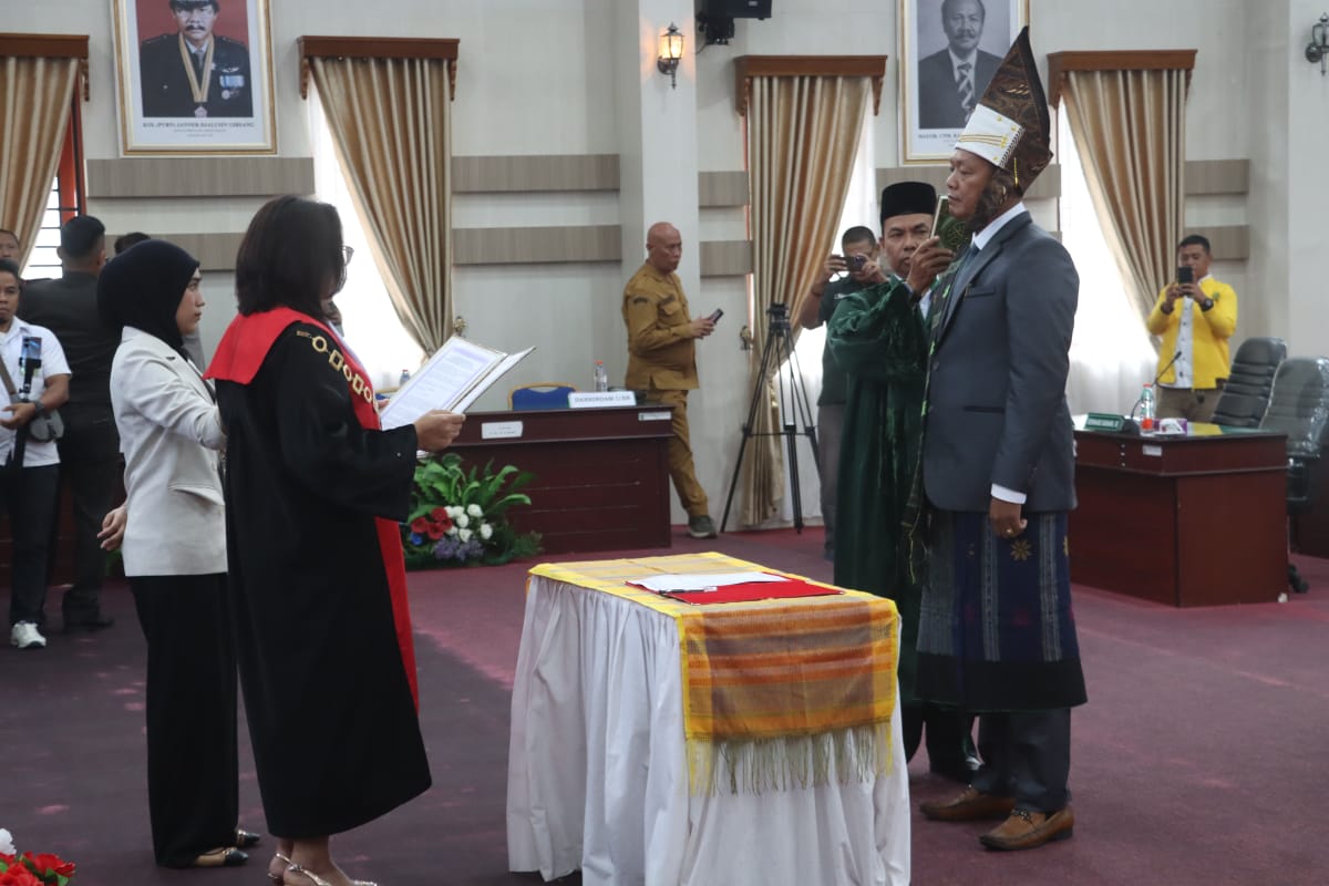 Puncak acara adalah pengambilan sumpah/janji Pimpinan DPRD Kabupaten Simalungun masa jabatan 2024-2029 yang dipimpin oleh Ketua Pengadilan Negeri Simalungun Erika Sari Emsah Ginting, S.H., M.H, dilanjutkan dengan penandatanganan berita acara dan penyerahan palu pimpinan dari Wakil Ketua DPRD kepada Ketua DPRD Kabupaten Simalungun.