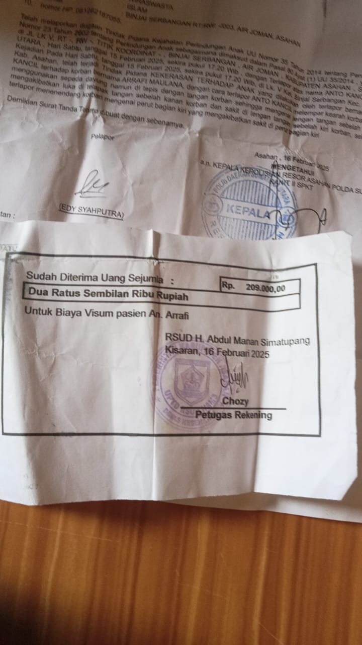 MATAHUKUM.ID/Kisaran-Laporan korban dugaan penganiayaan terhadap anak dibawah umur yang dilaporkan pada 16 februari 2025 dengan Nomor :